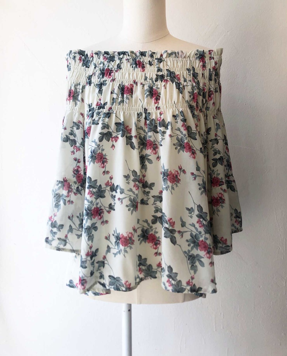 green rose garden off shoulder
