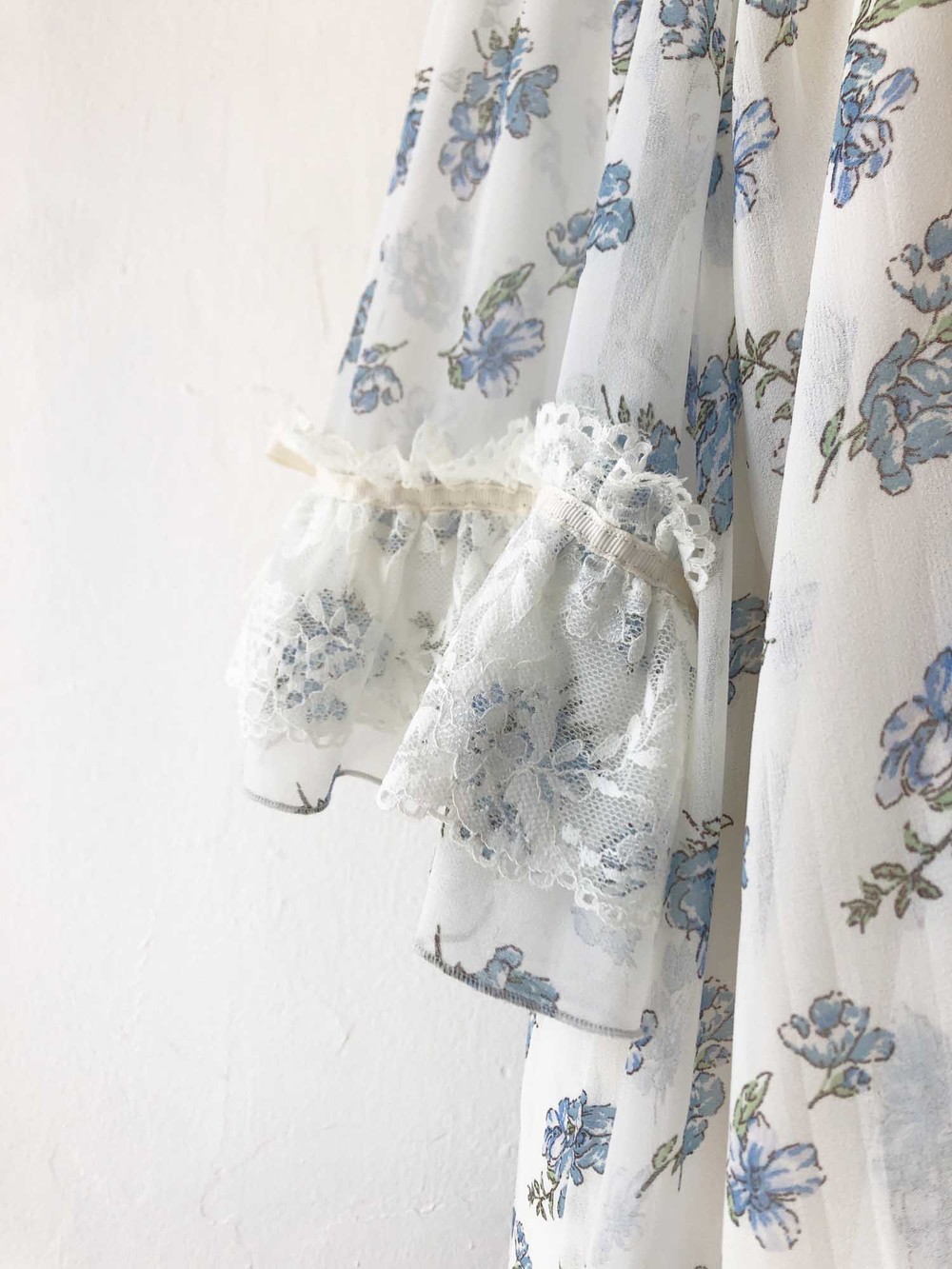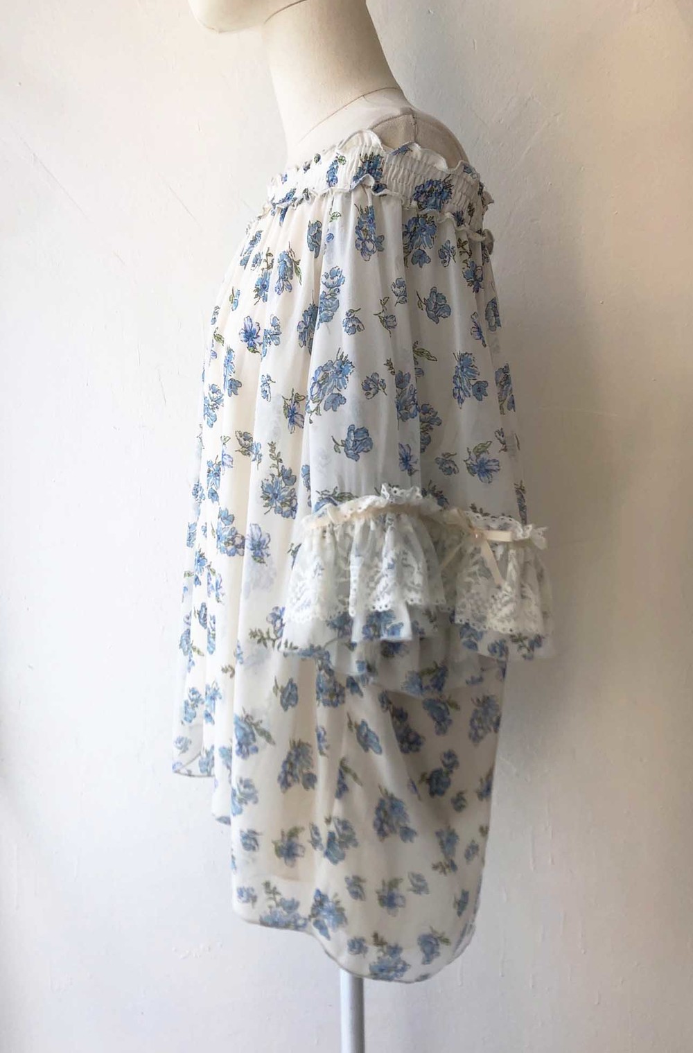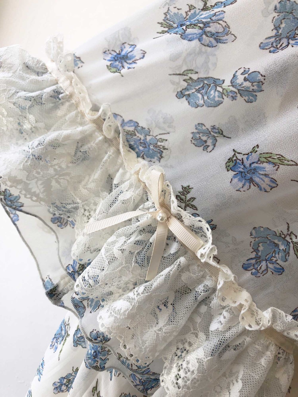 blue flower chiffon ribbon blouse