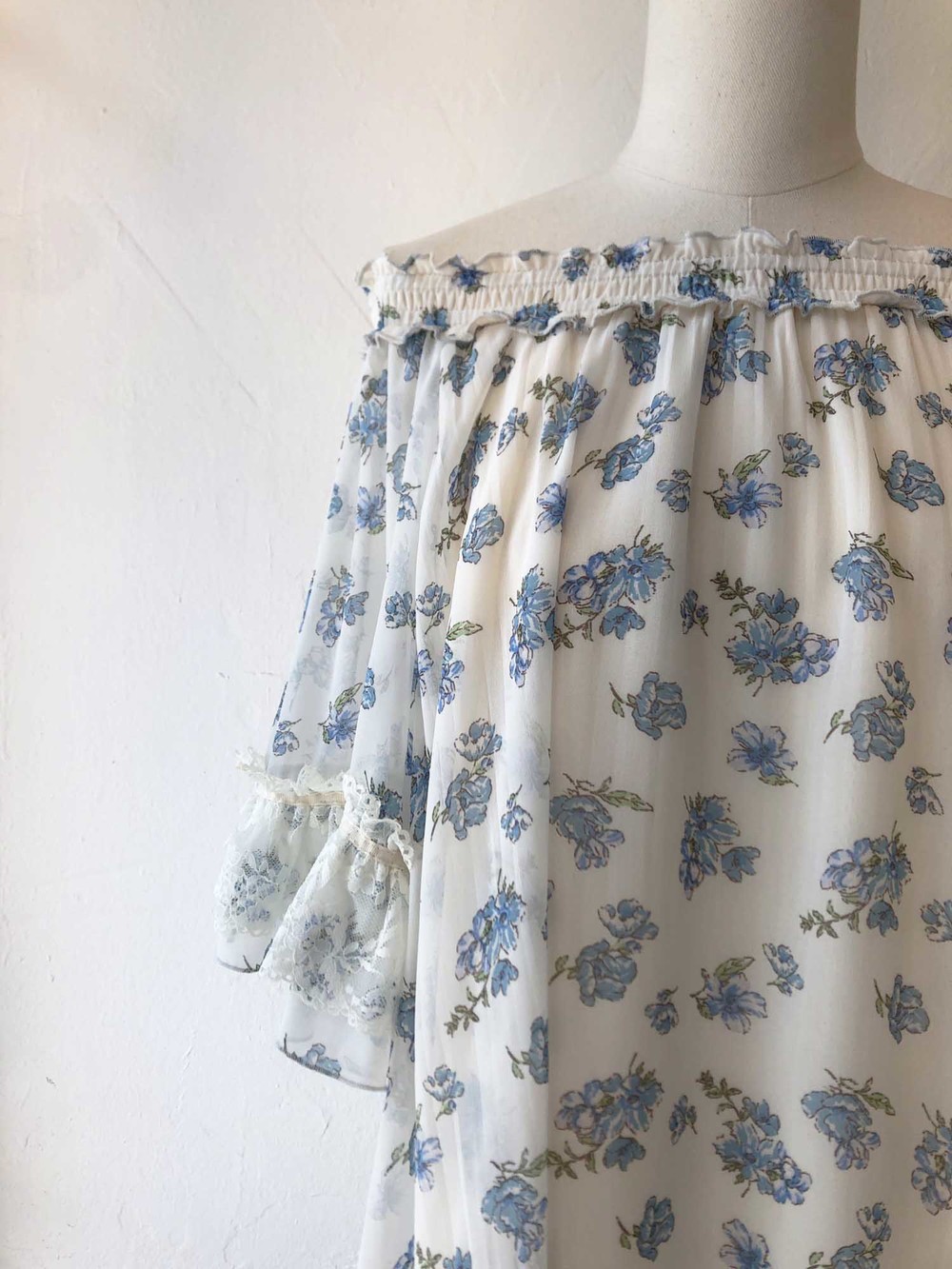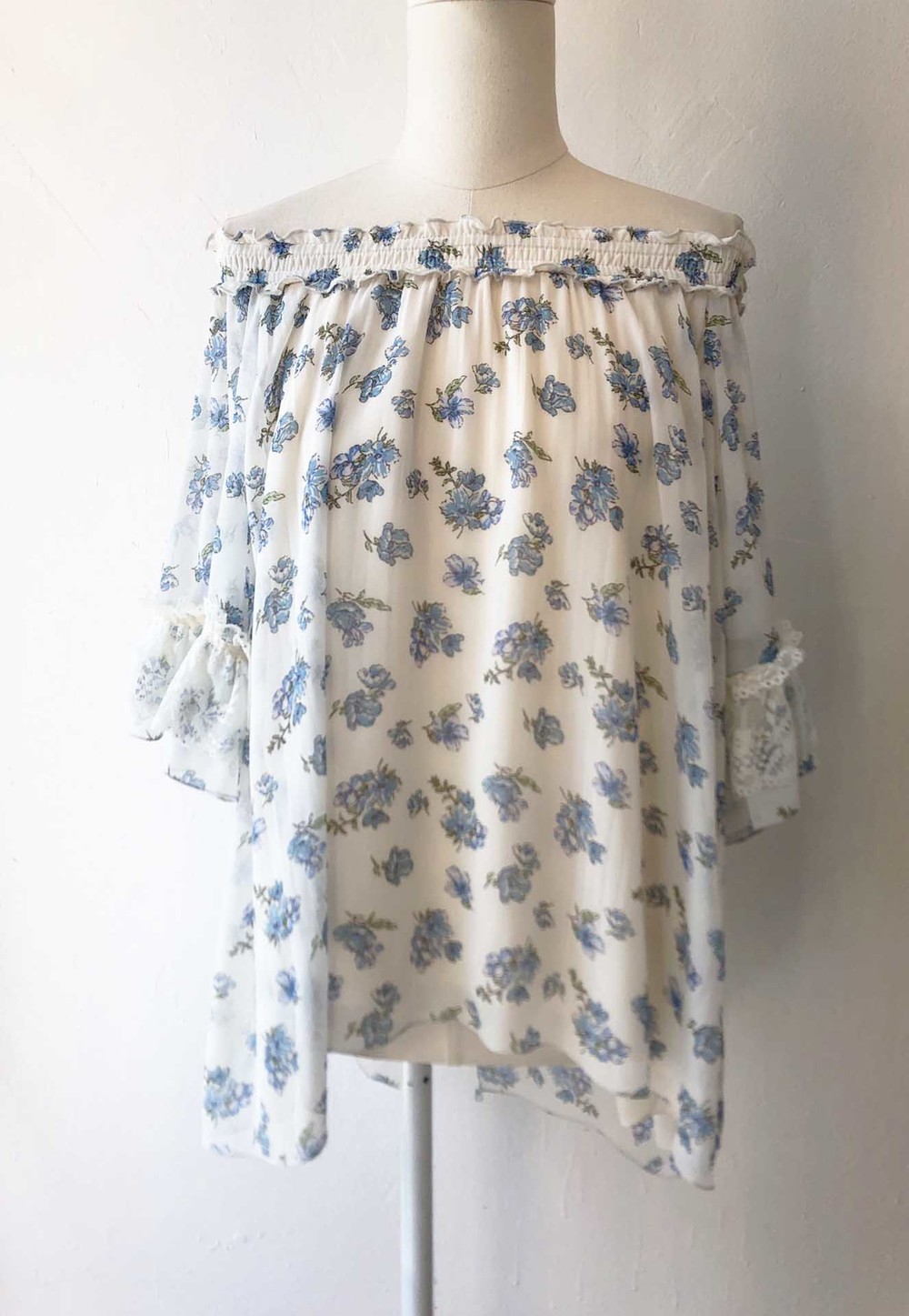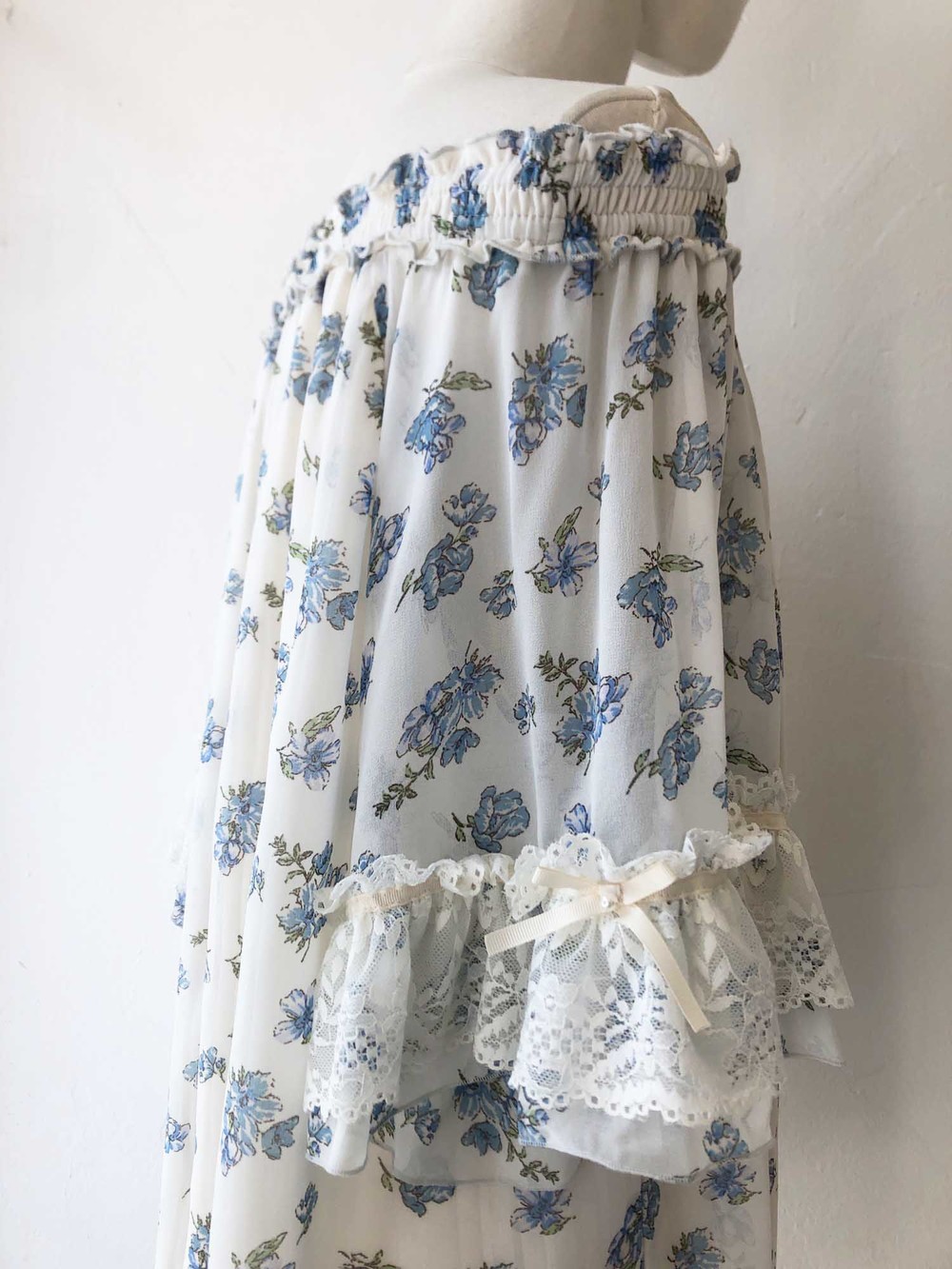 blue flower chiffon ribbon blouse