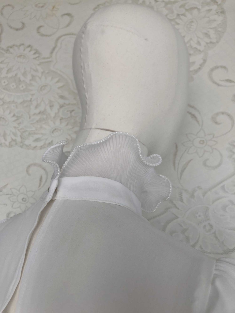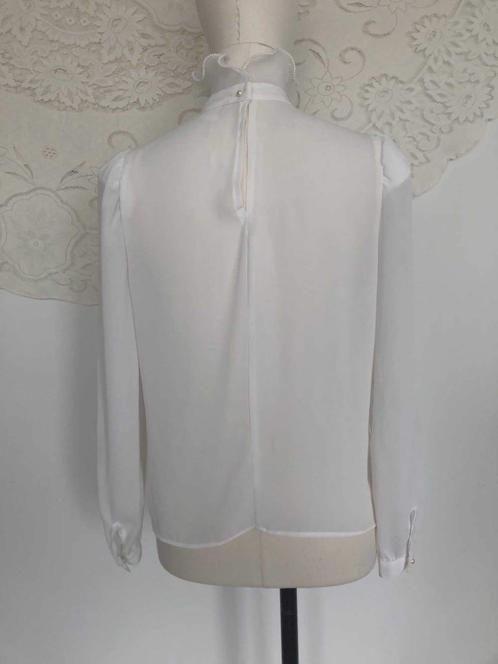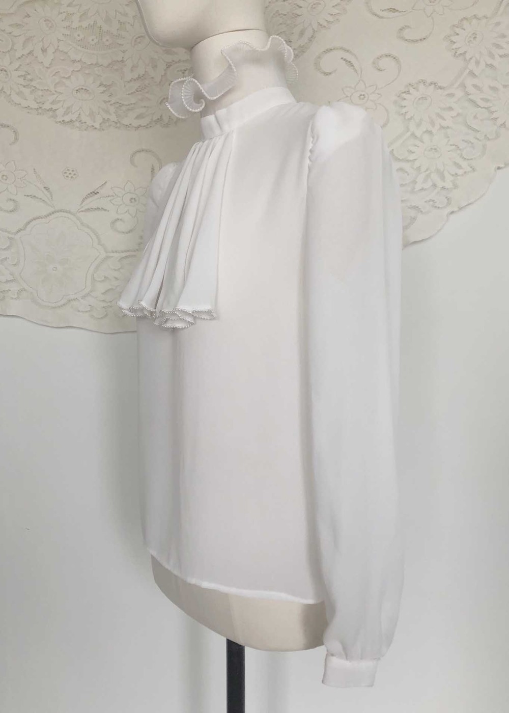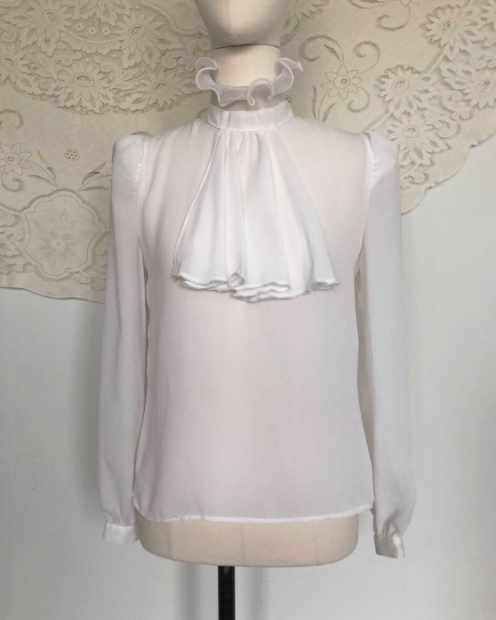 70s california pearl white frill neck blouse