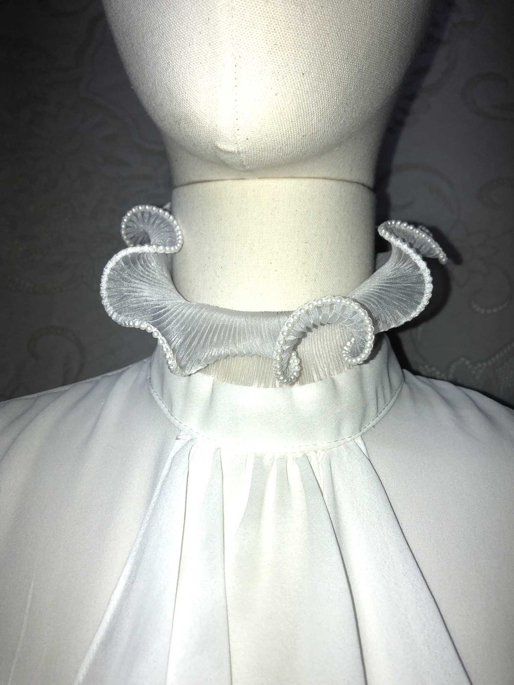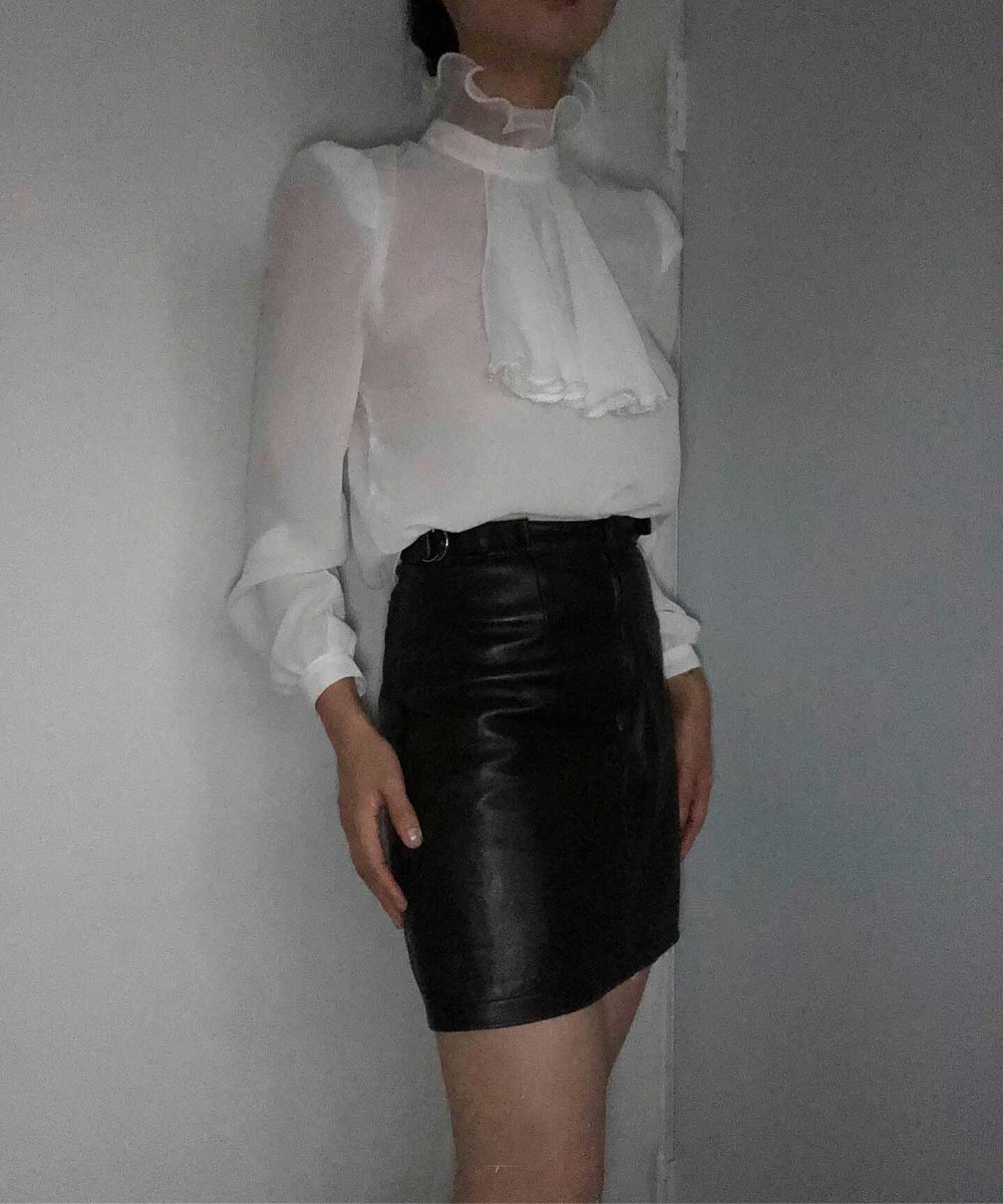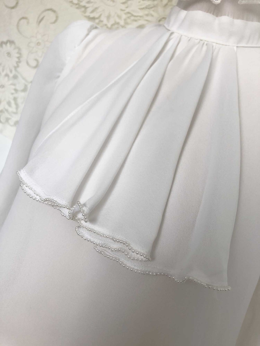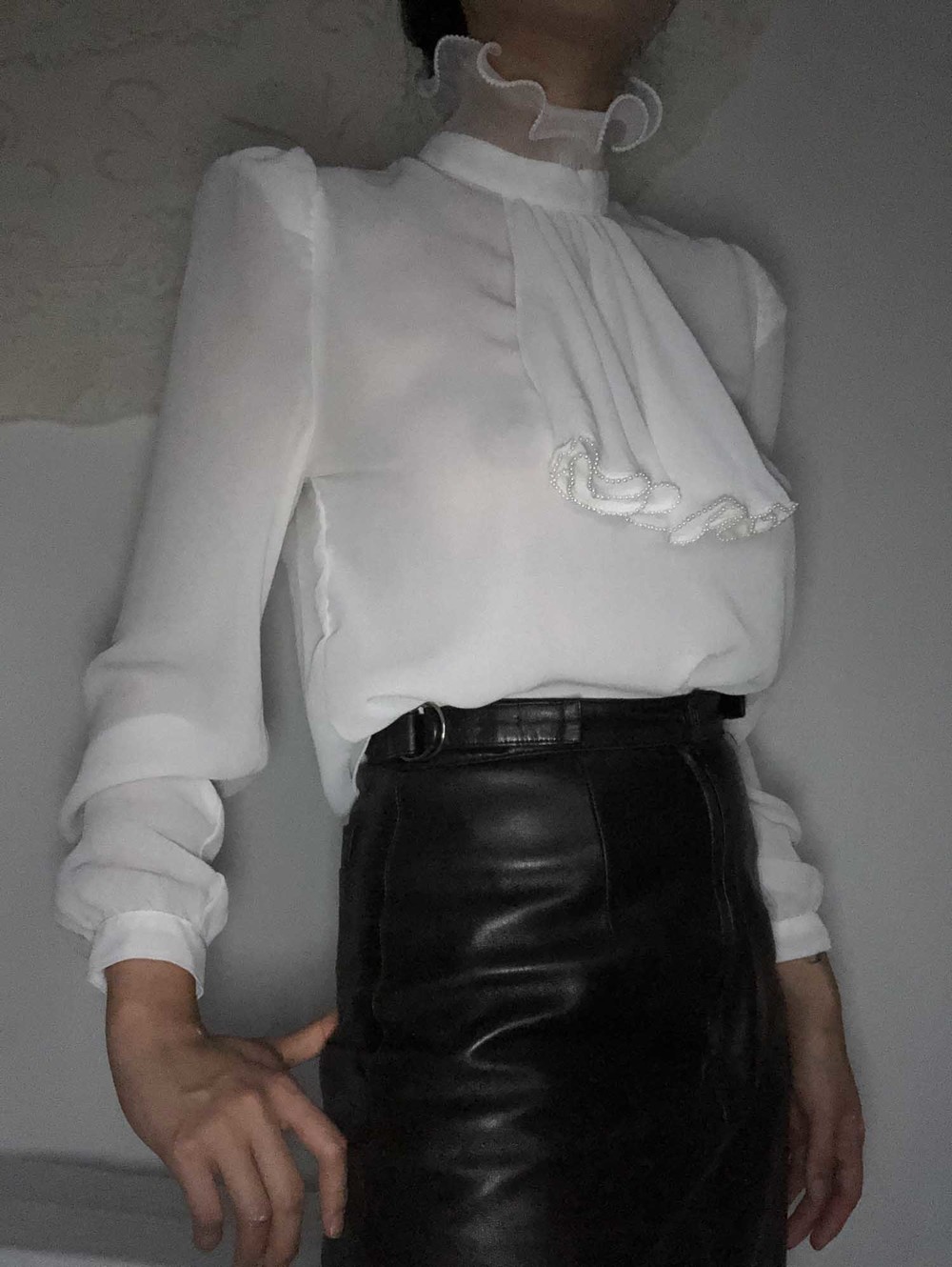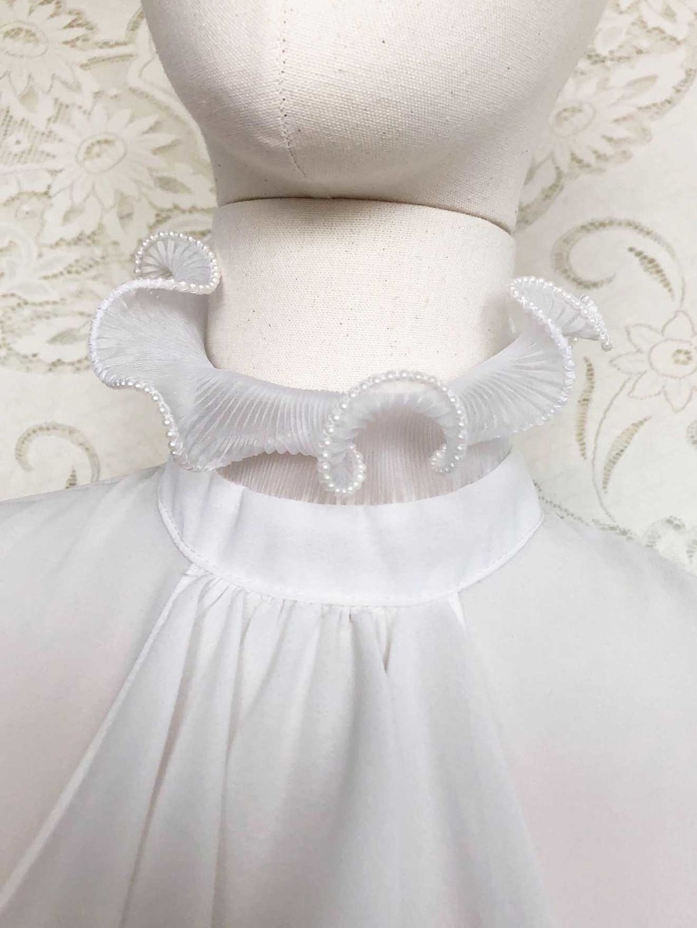 70s california pearl white frill neck blouse