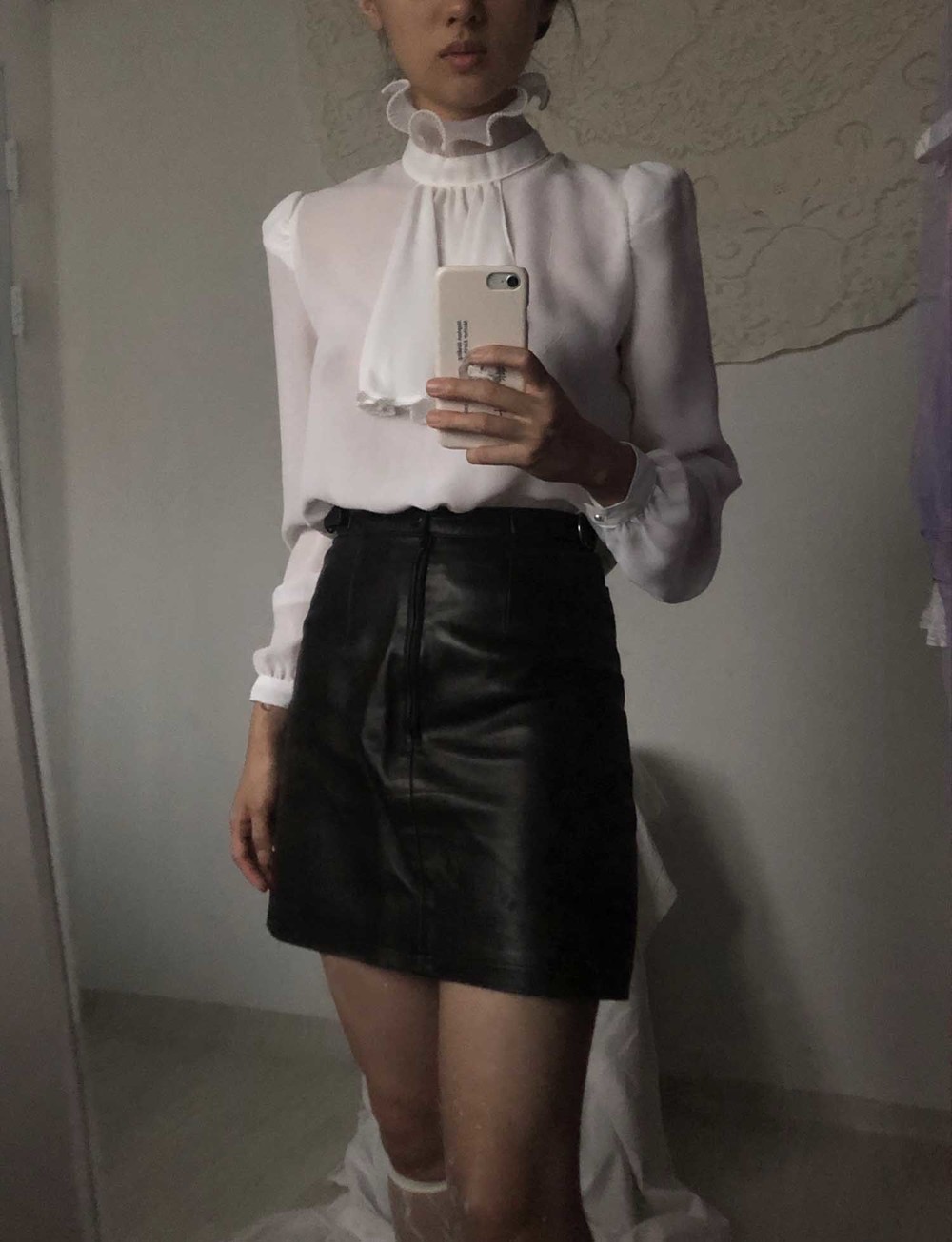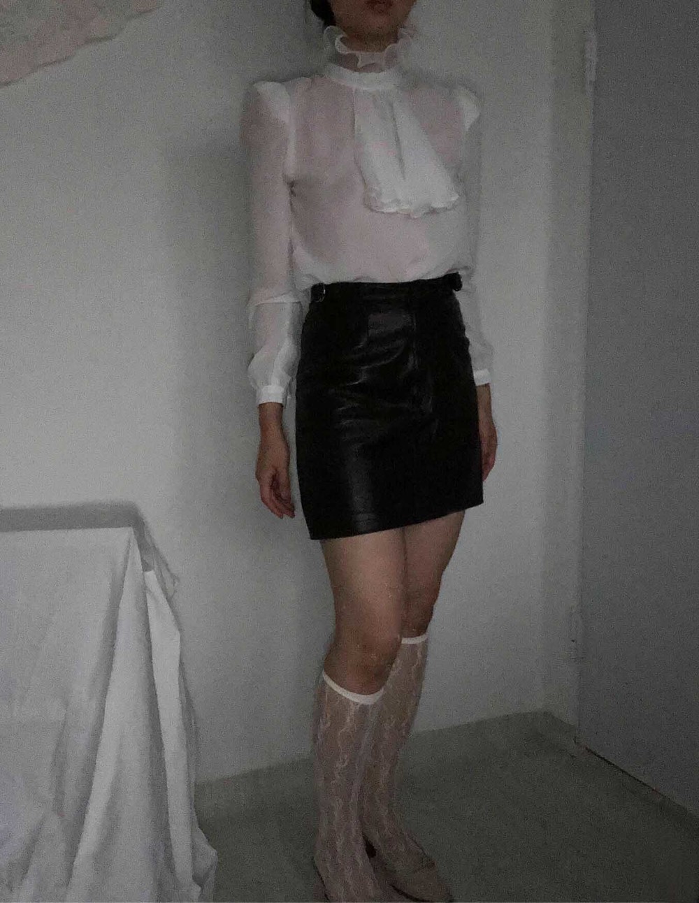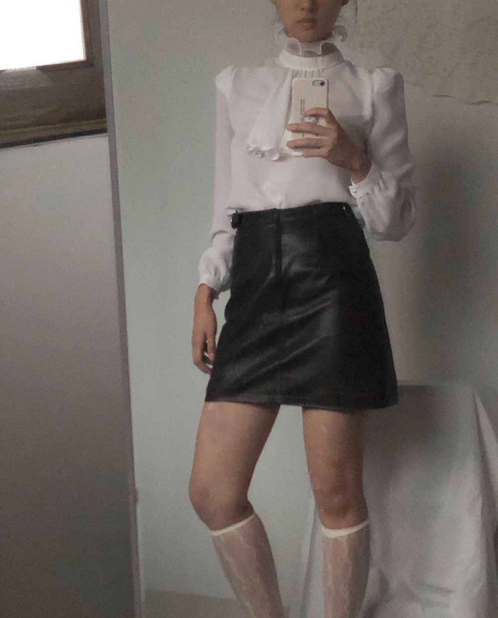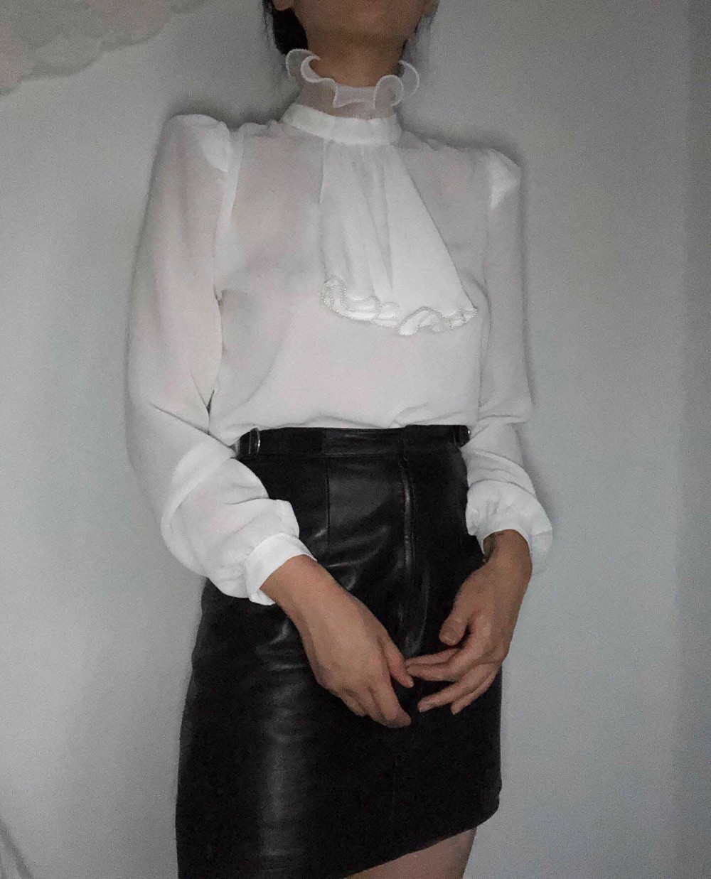 70s california pearl white frill neck blouse