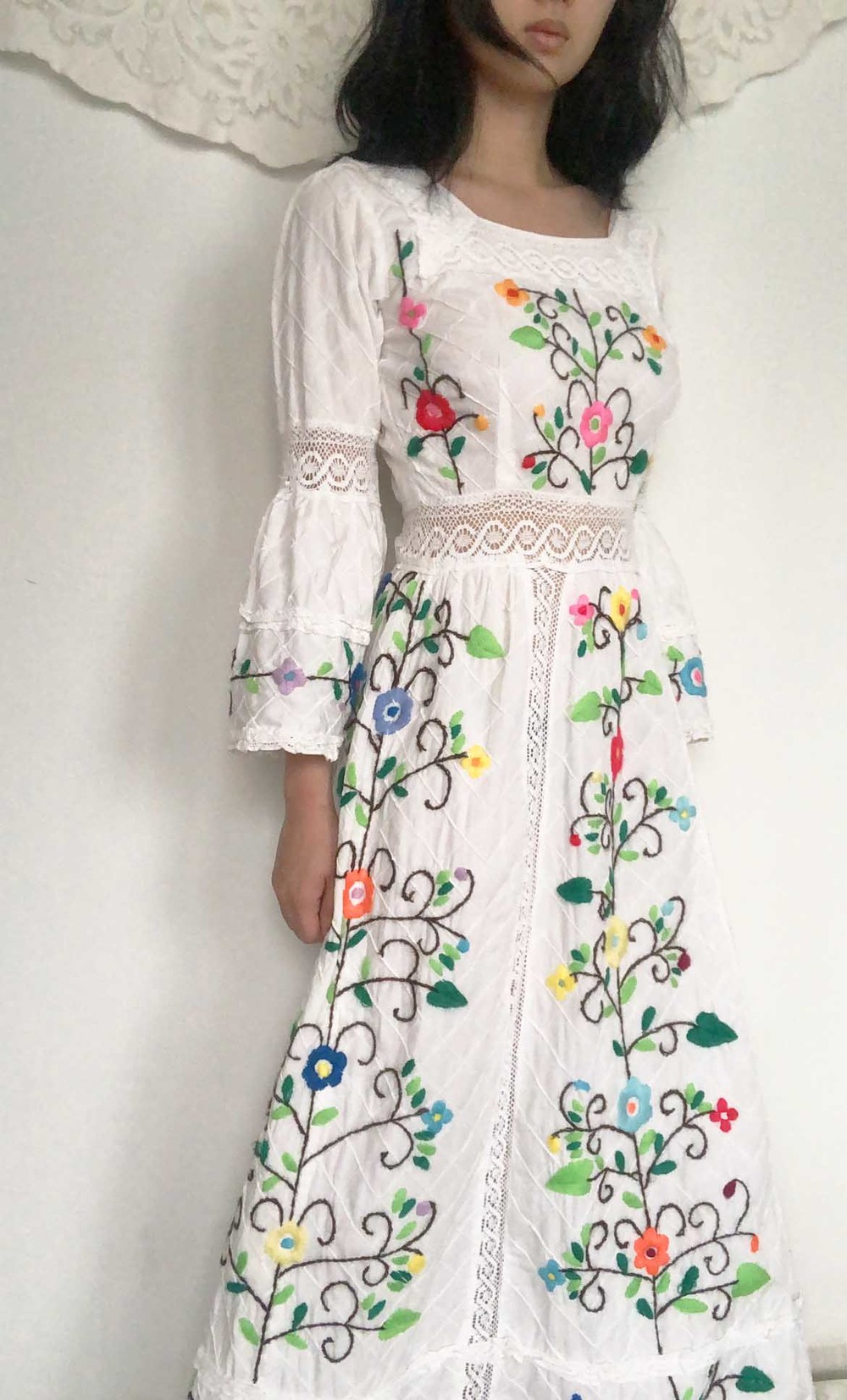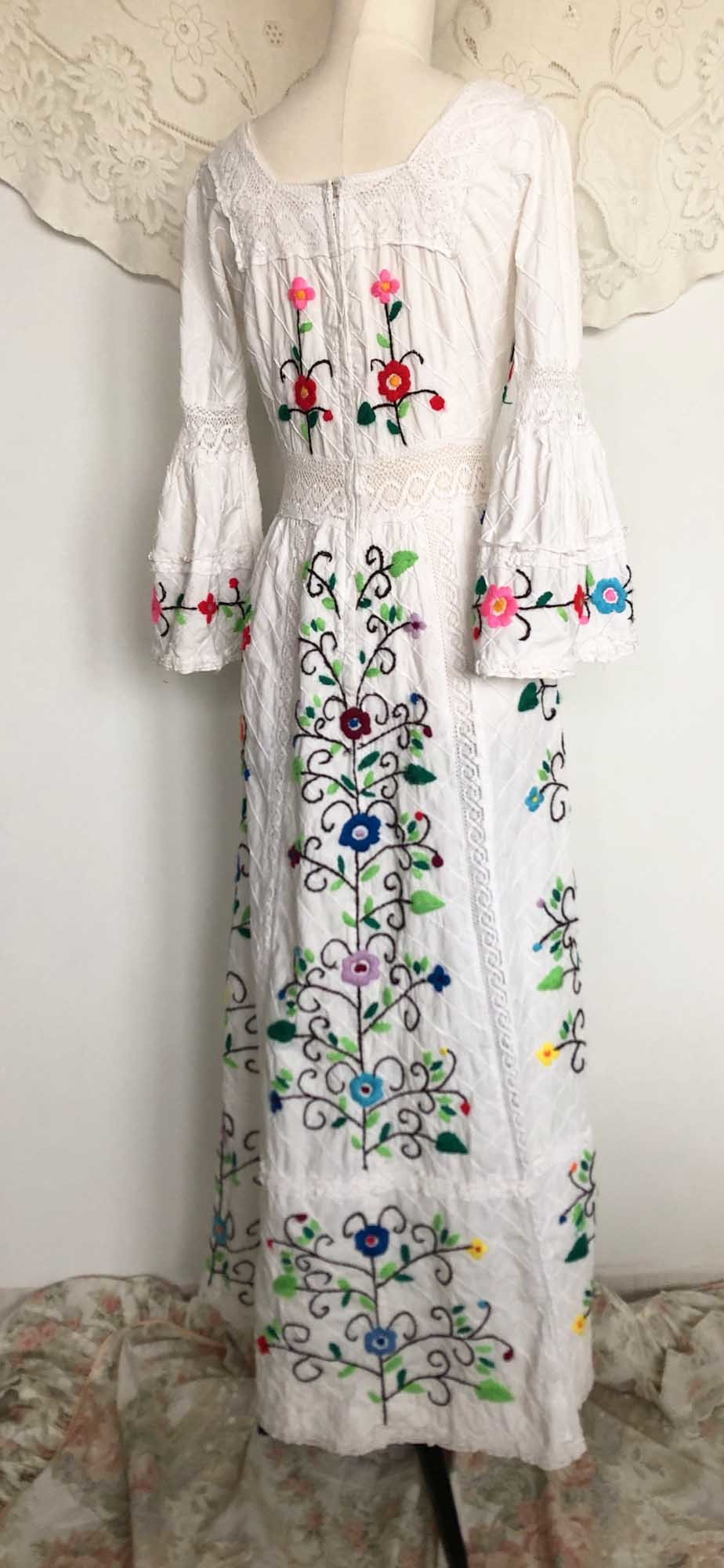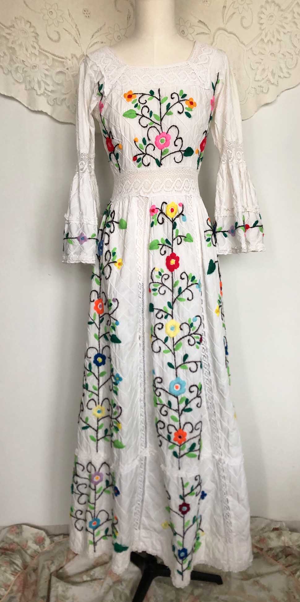 70s cotton usa wool flower embroidery dress