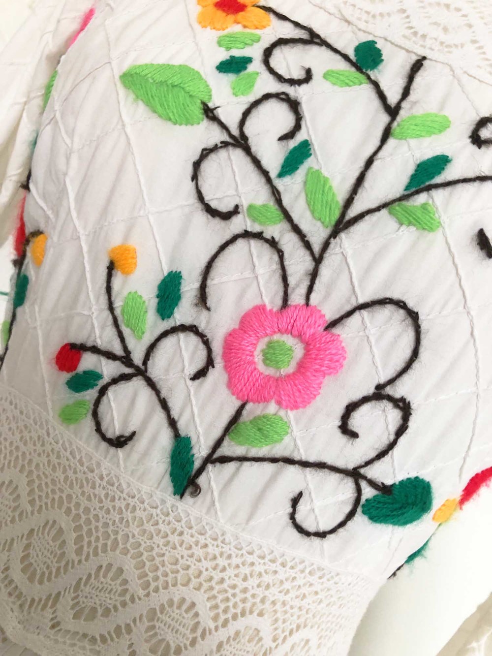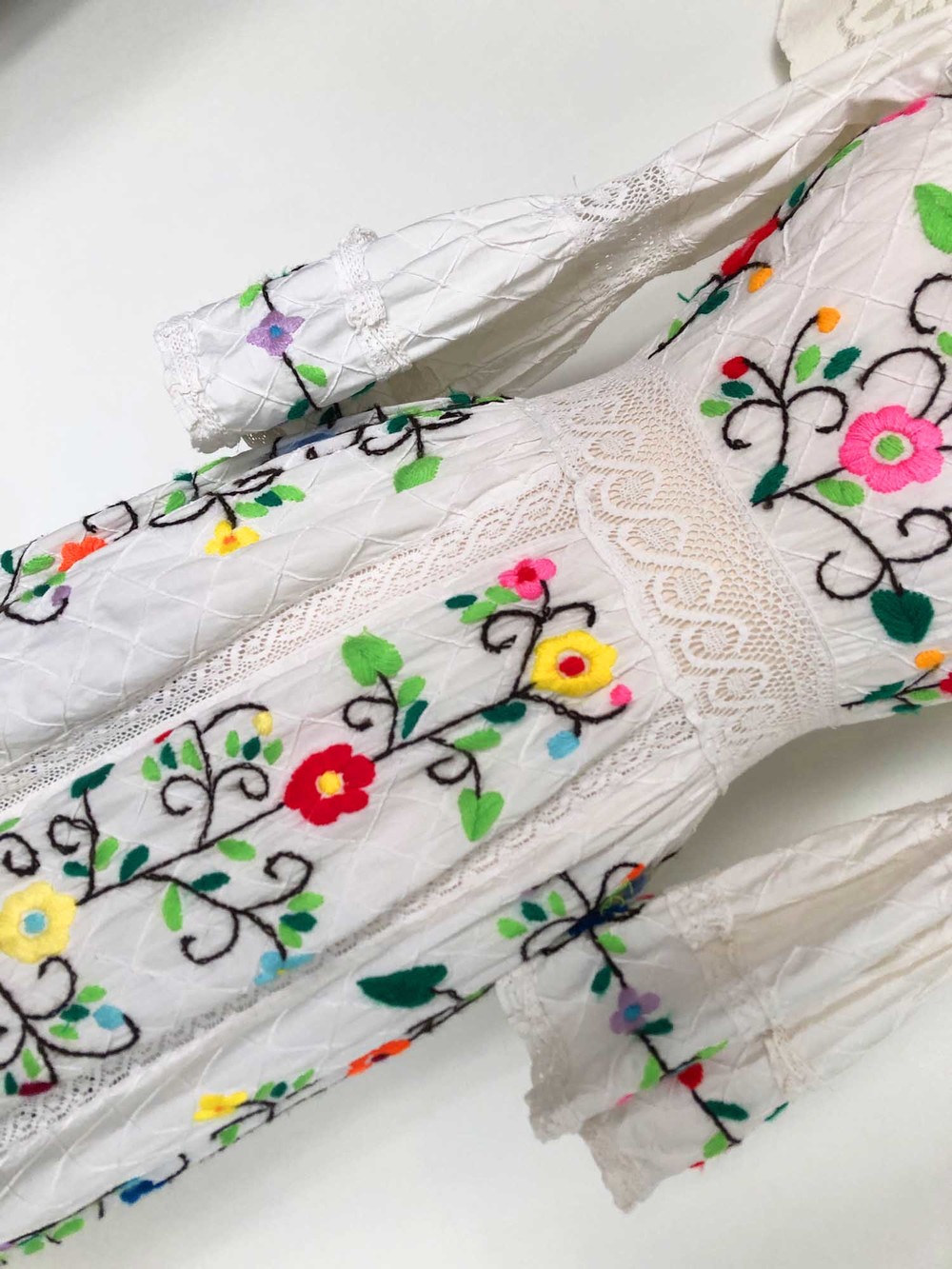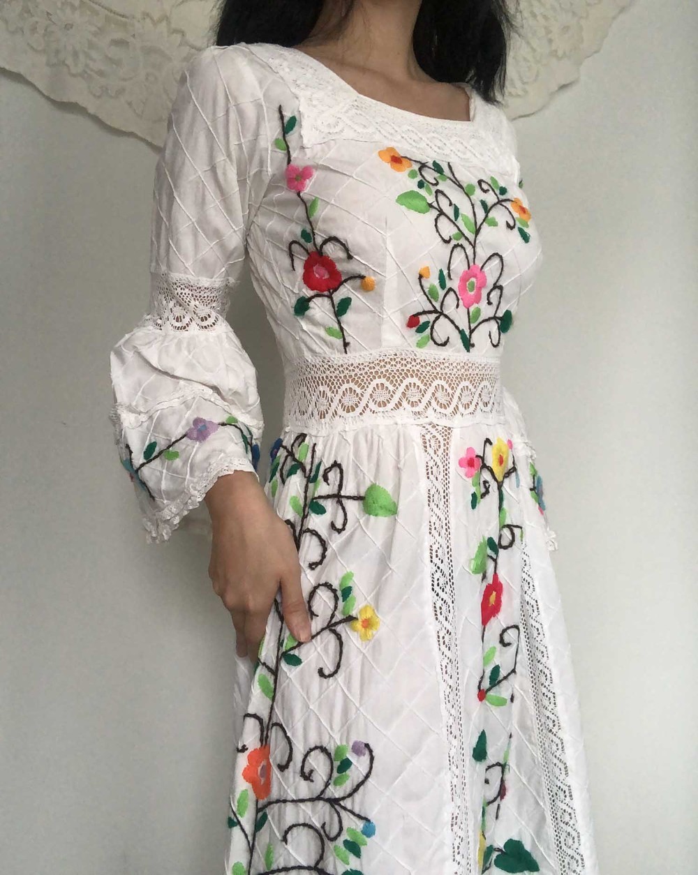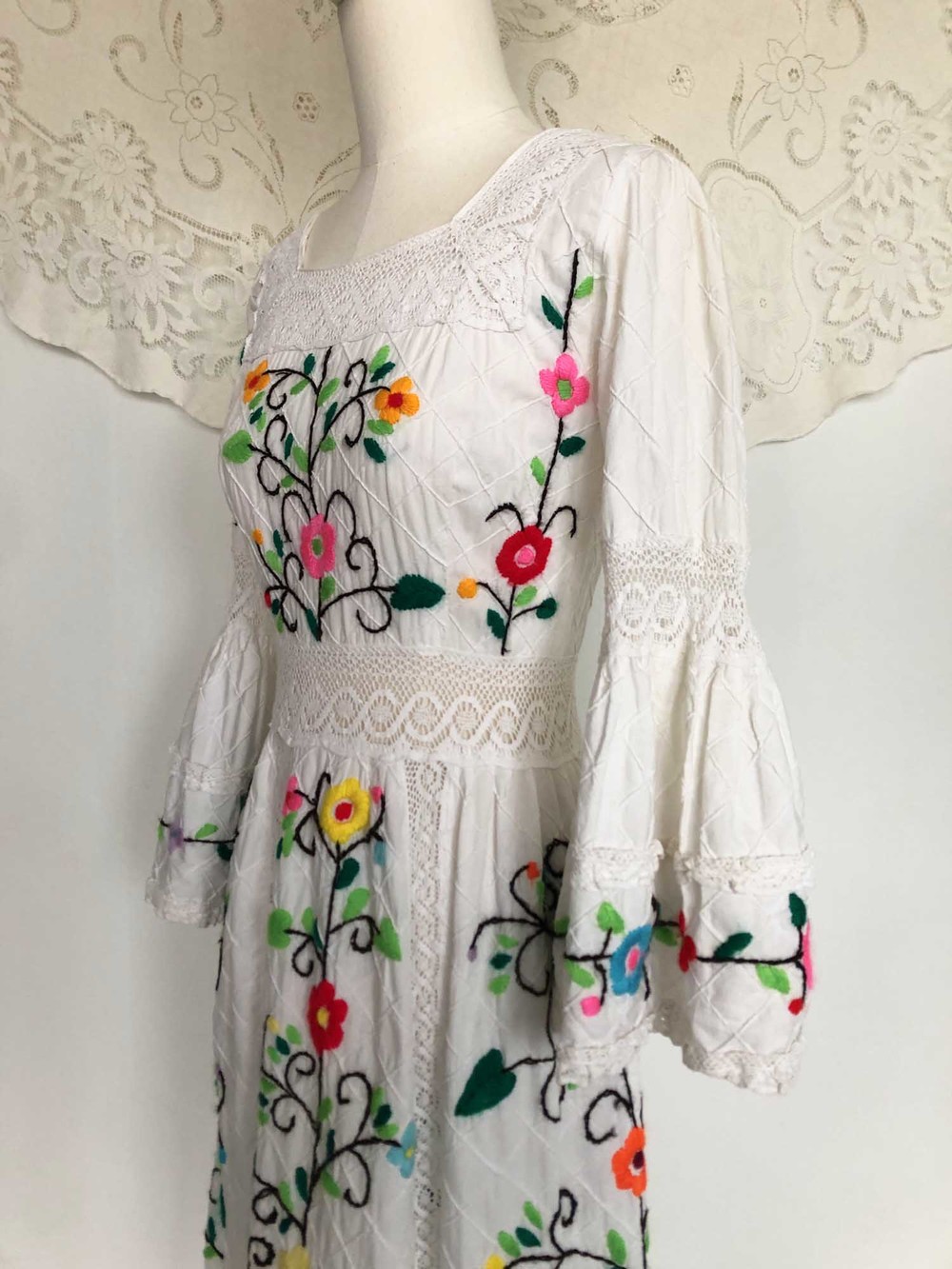 70s cotton usa wool flower embroidery dress