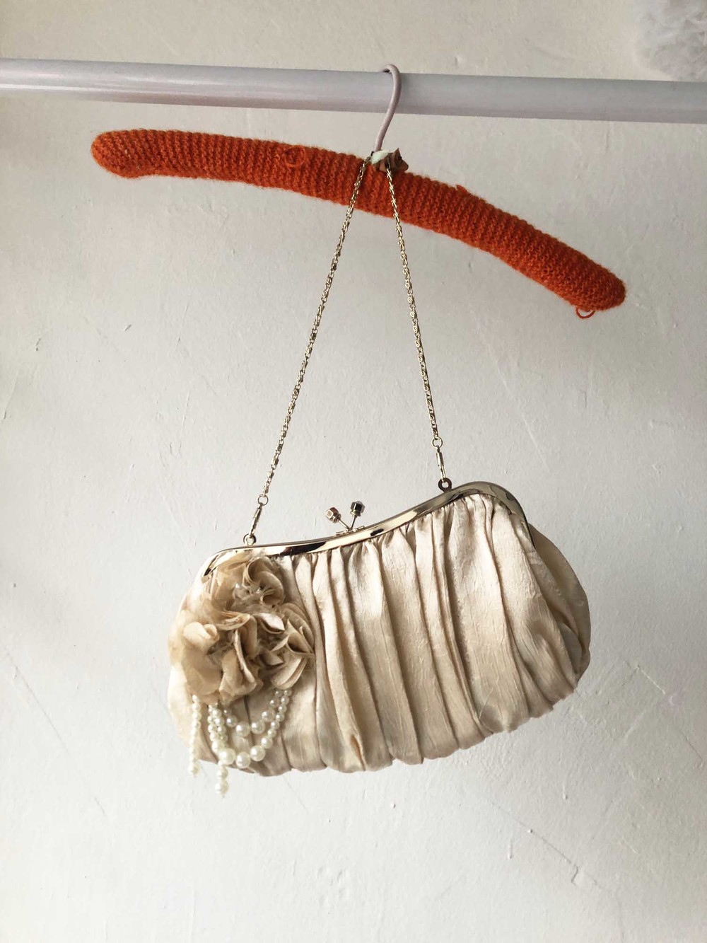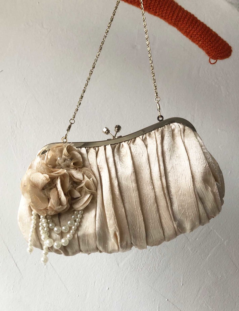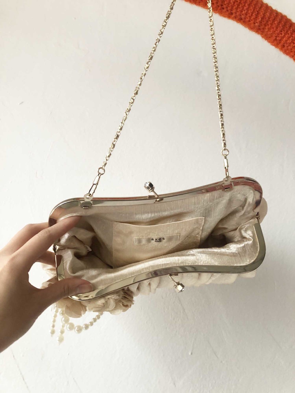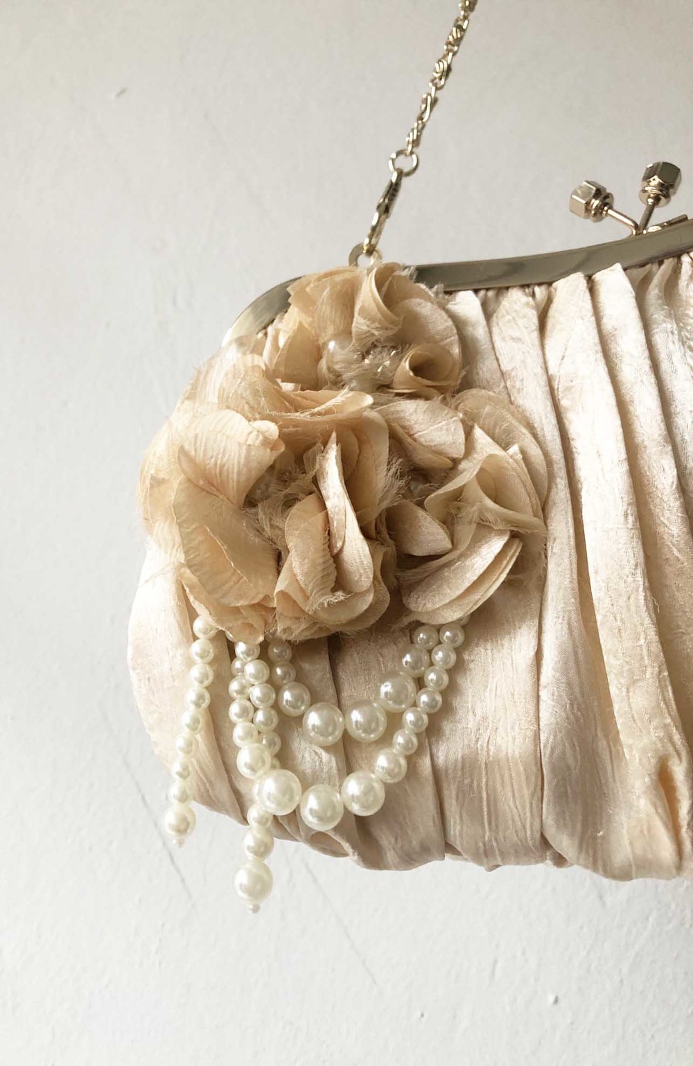 AXES FEMME beige silky drape pearl flower bag