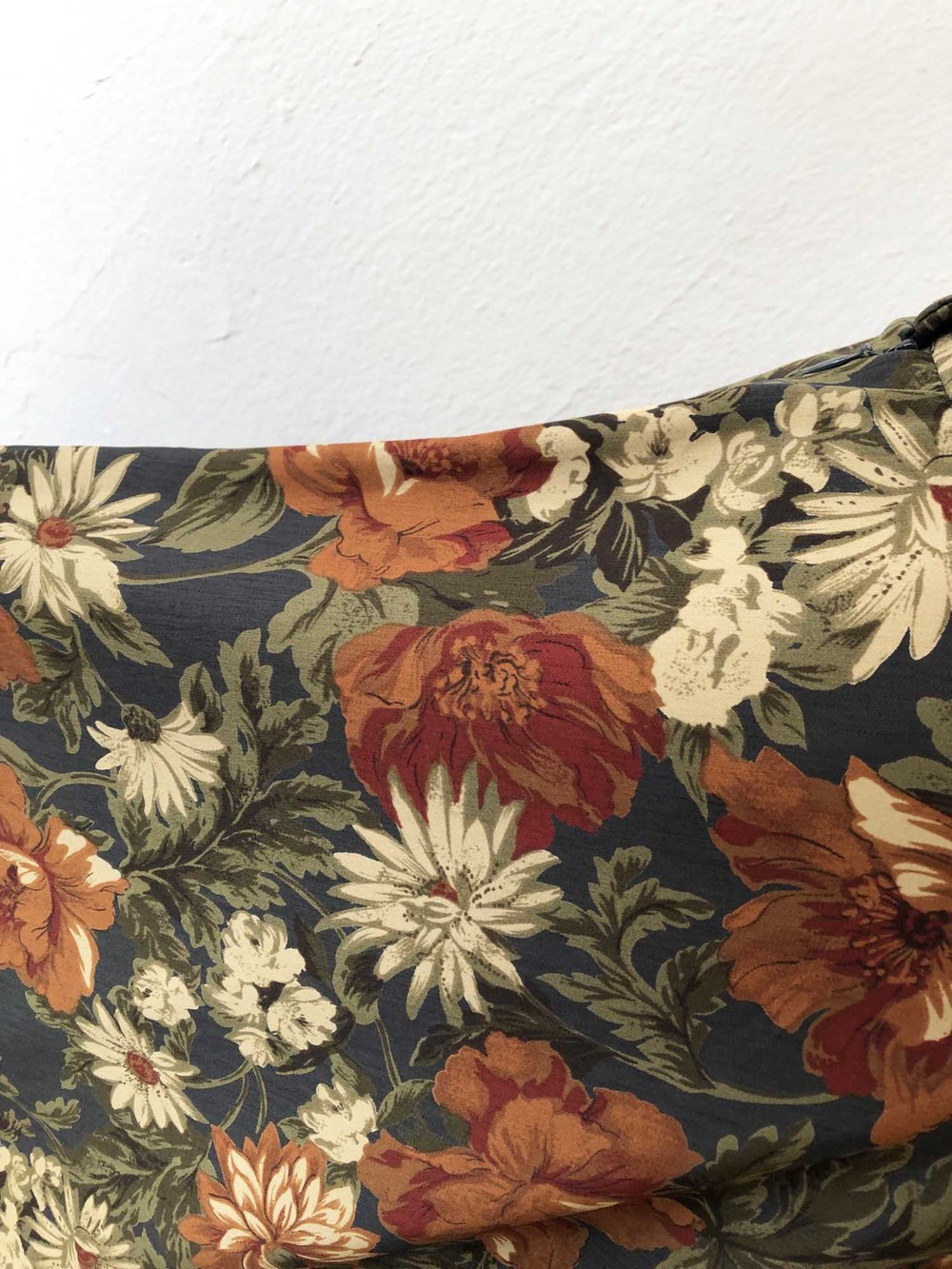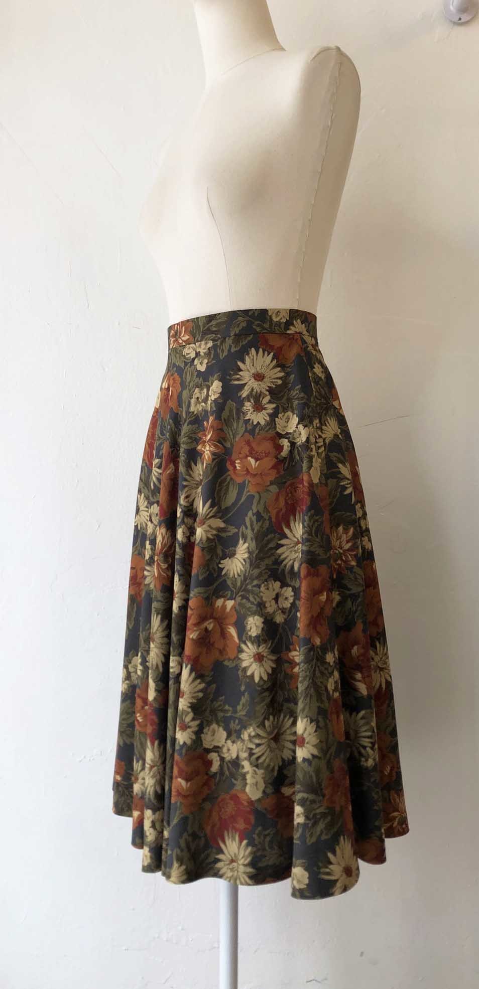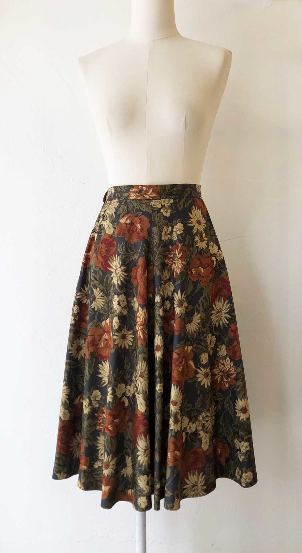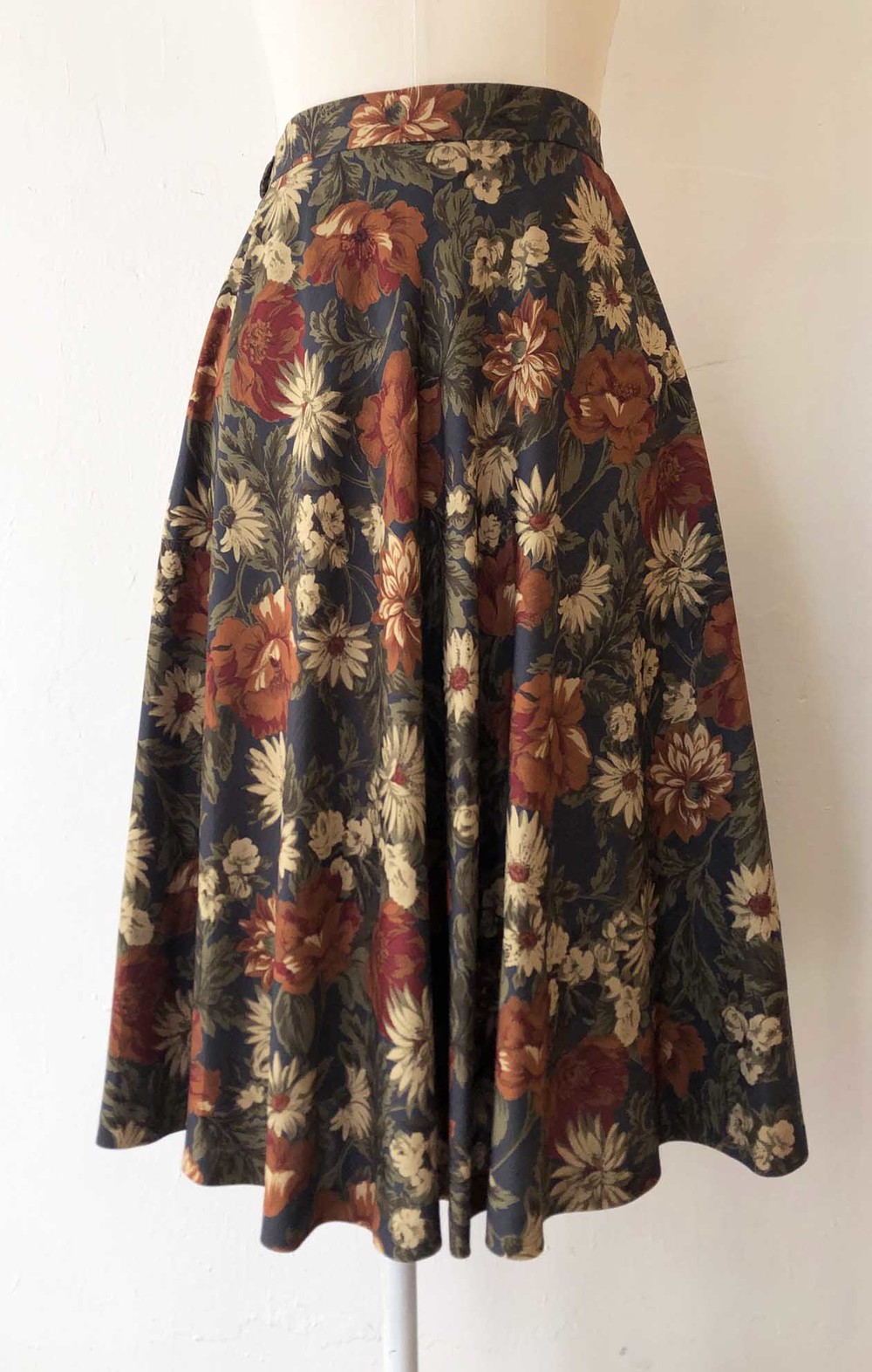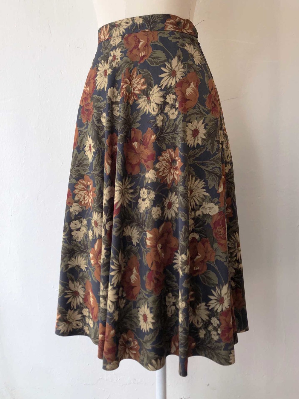 블루그레이빛 위의 차분한 색감의 꽃 플레어스커트.