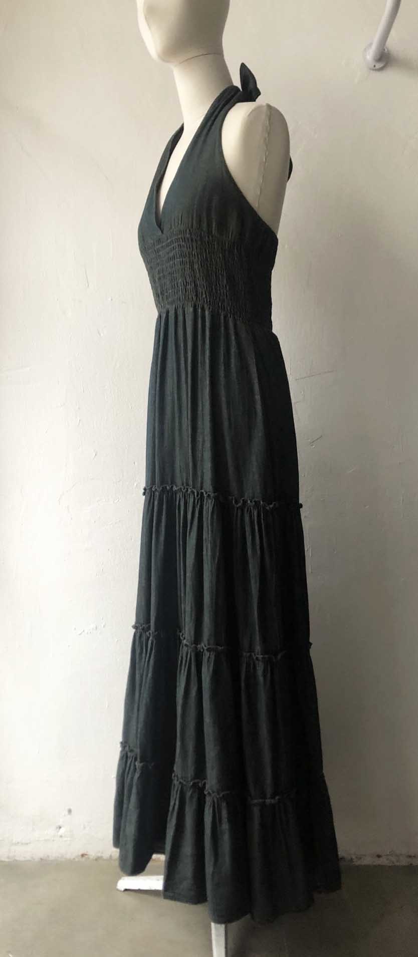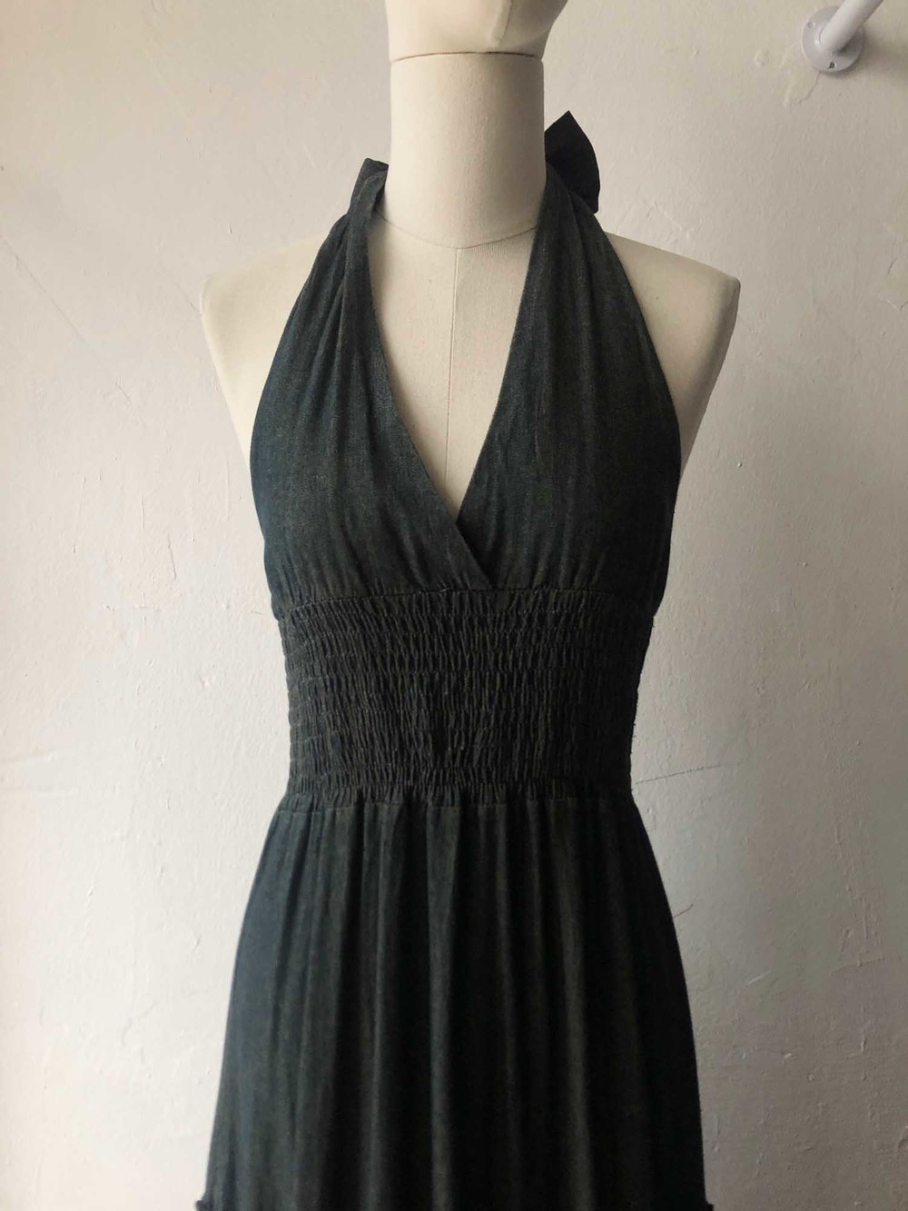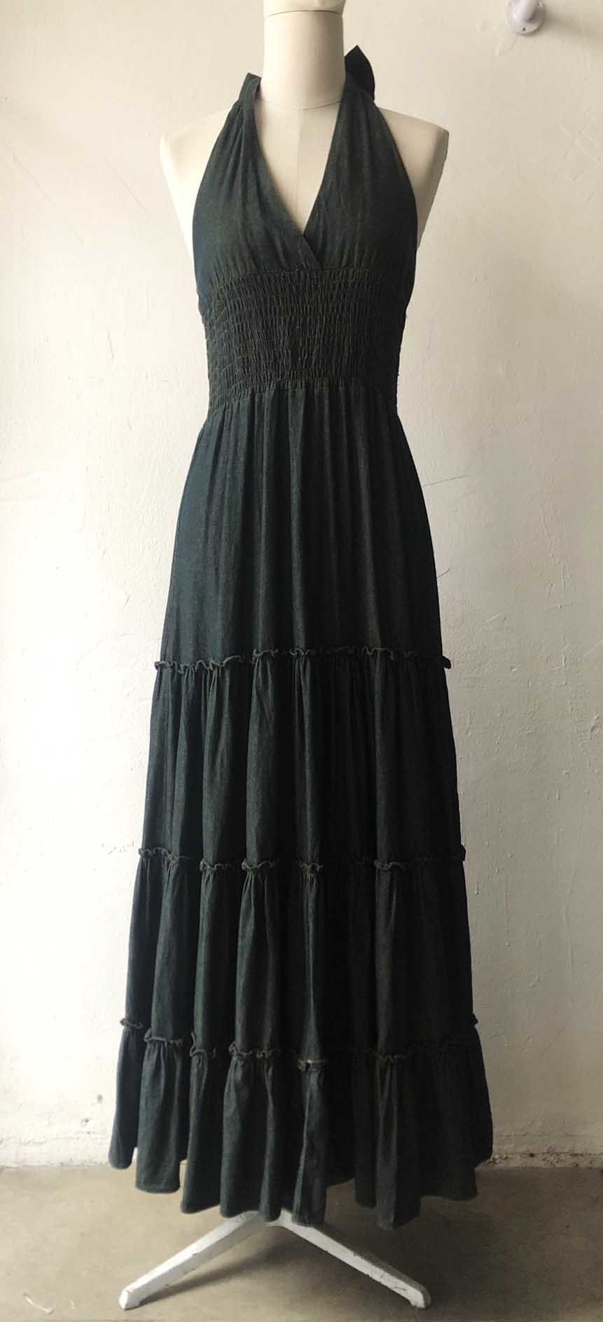 great dark washing denim long halter dress
