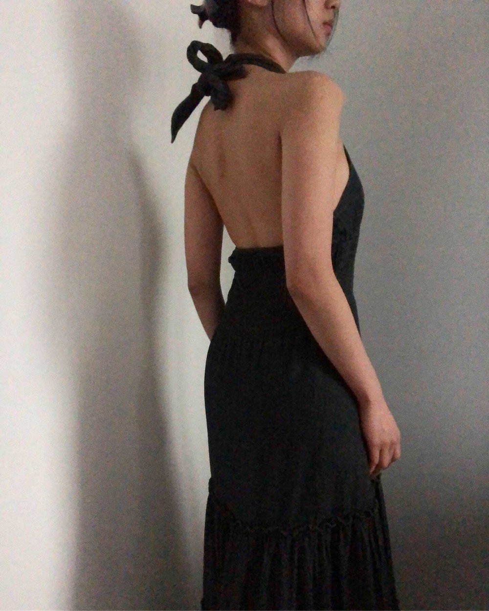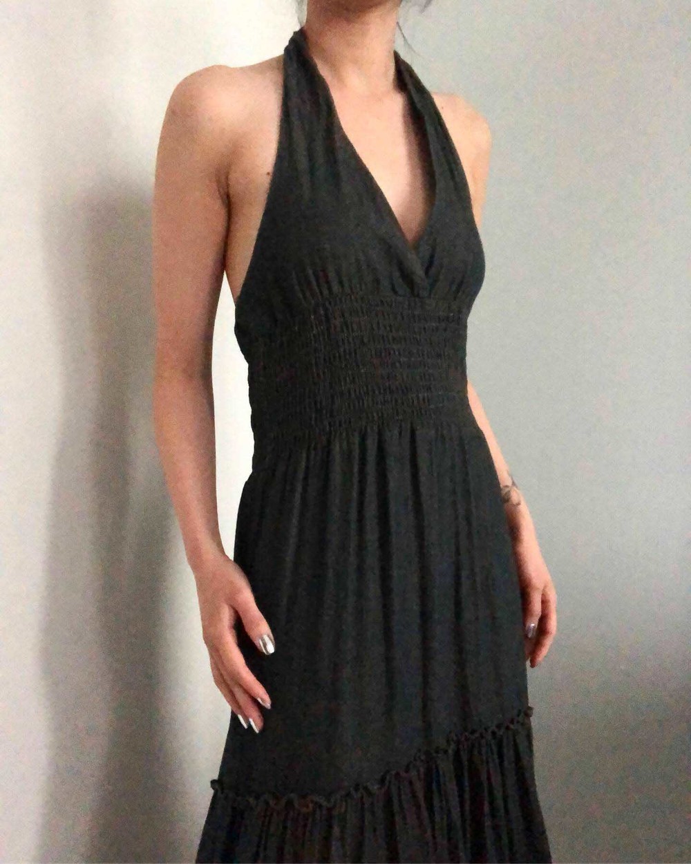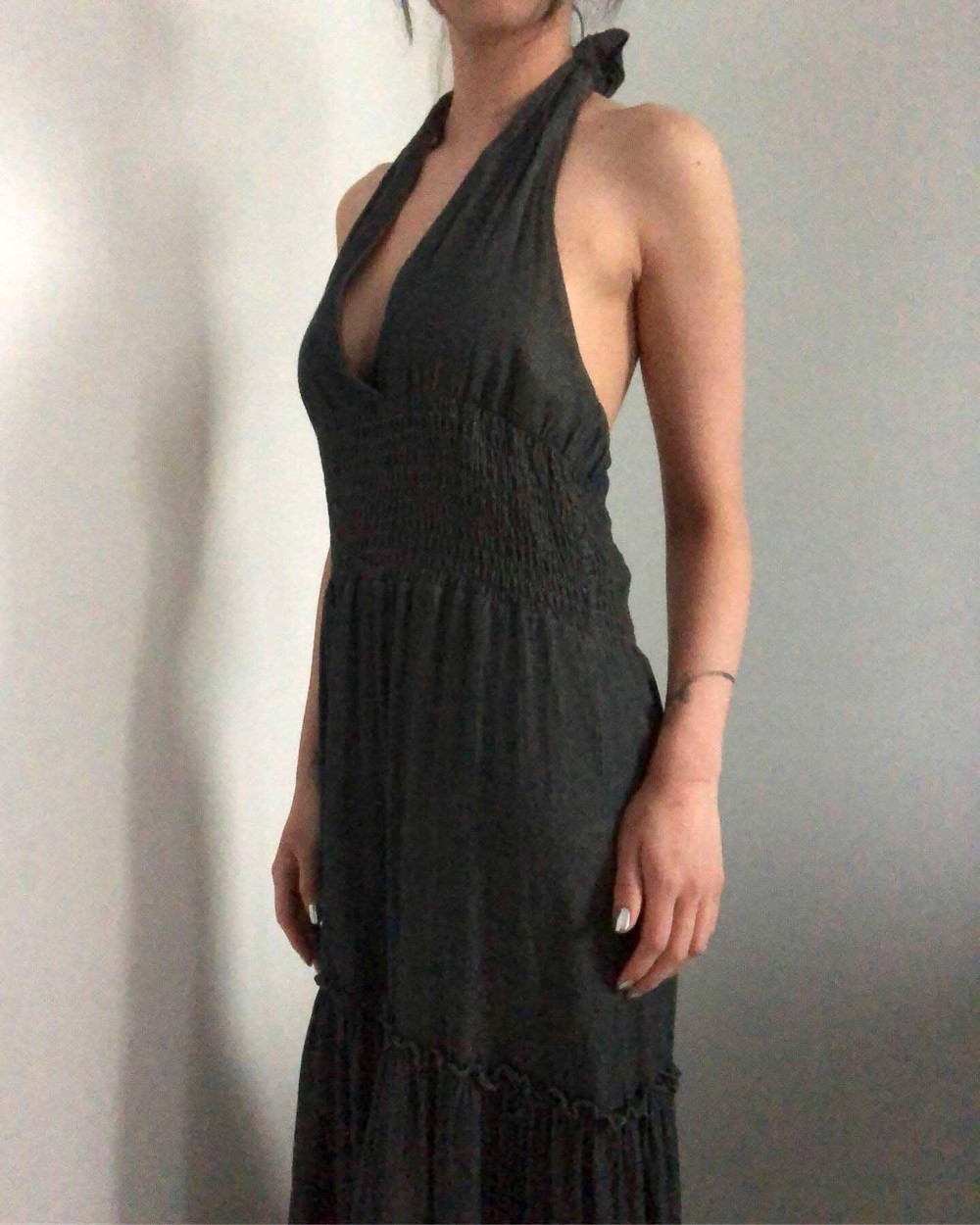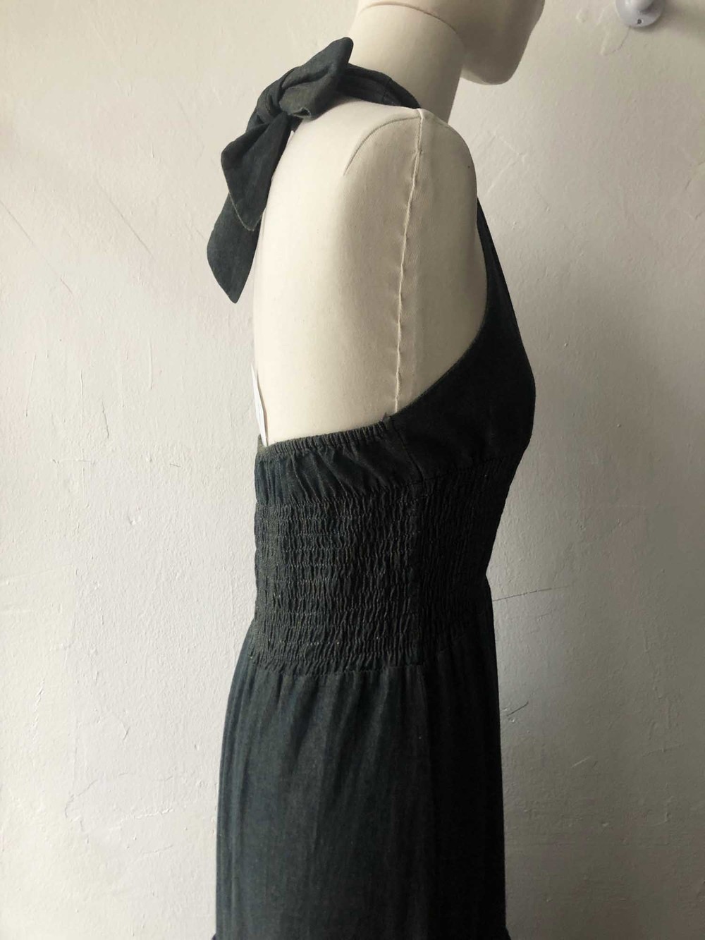 great dark washing denim long halter dress