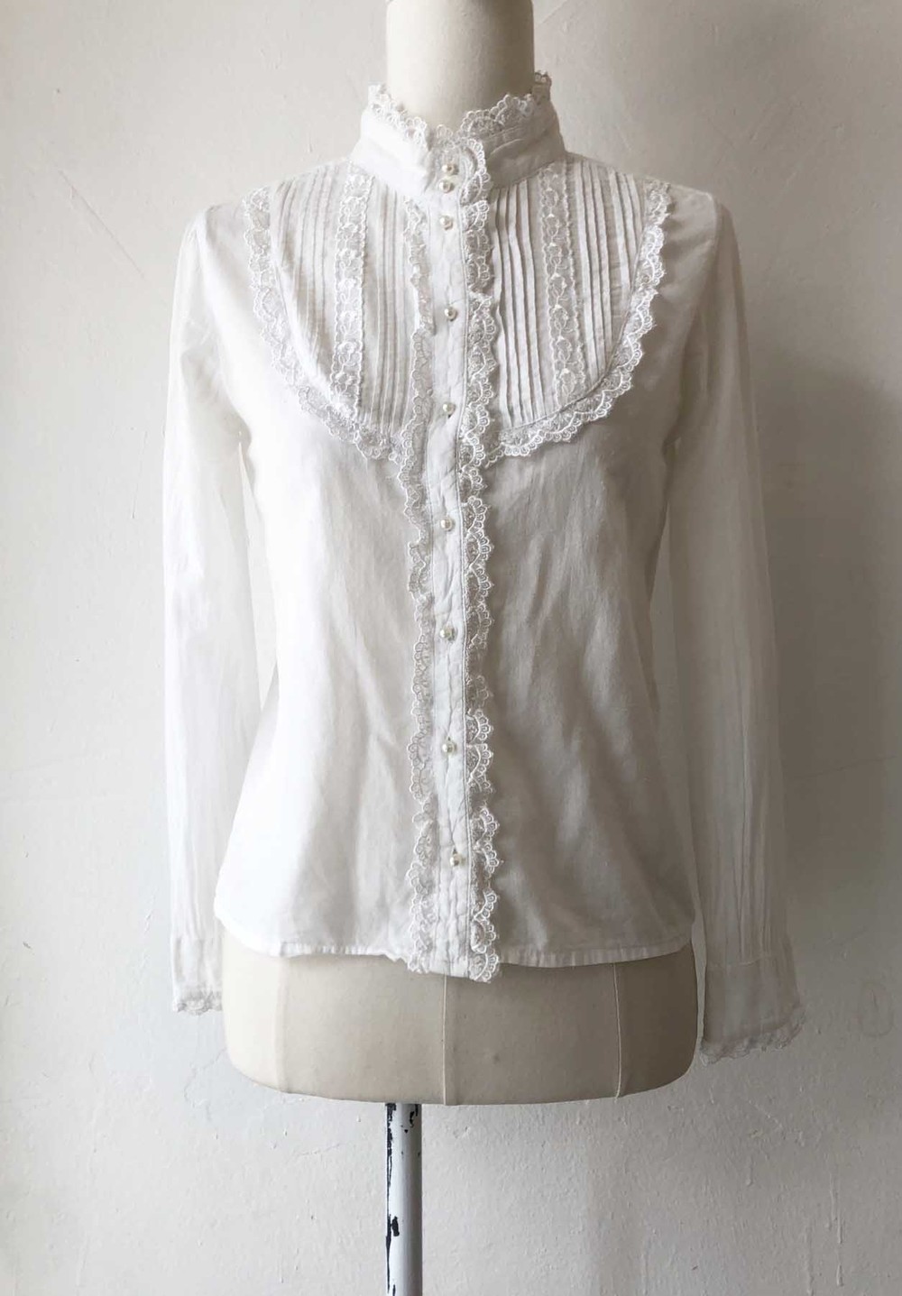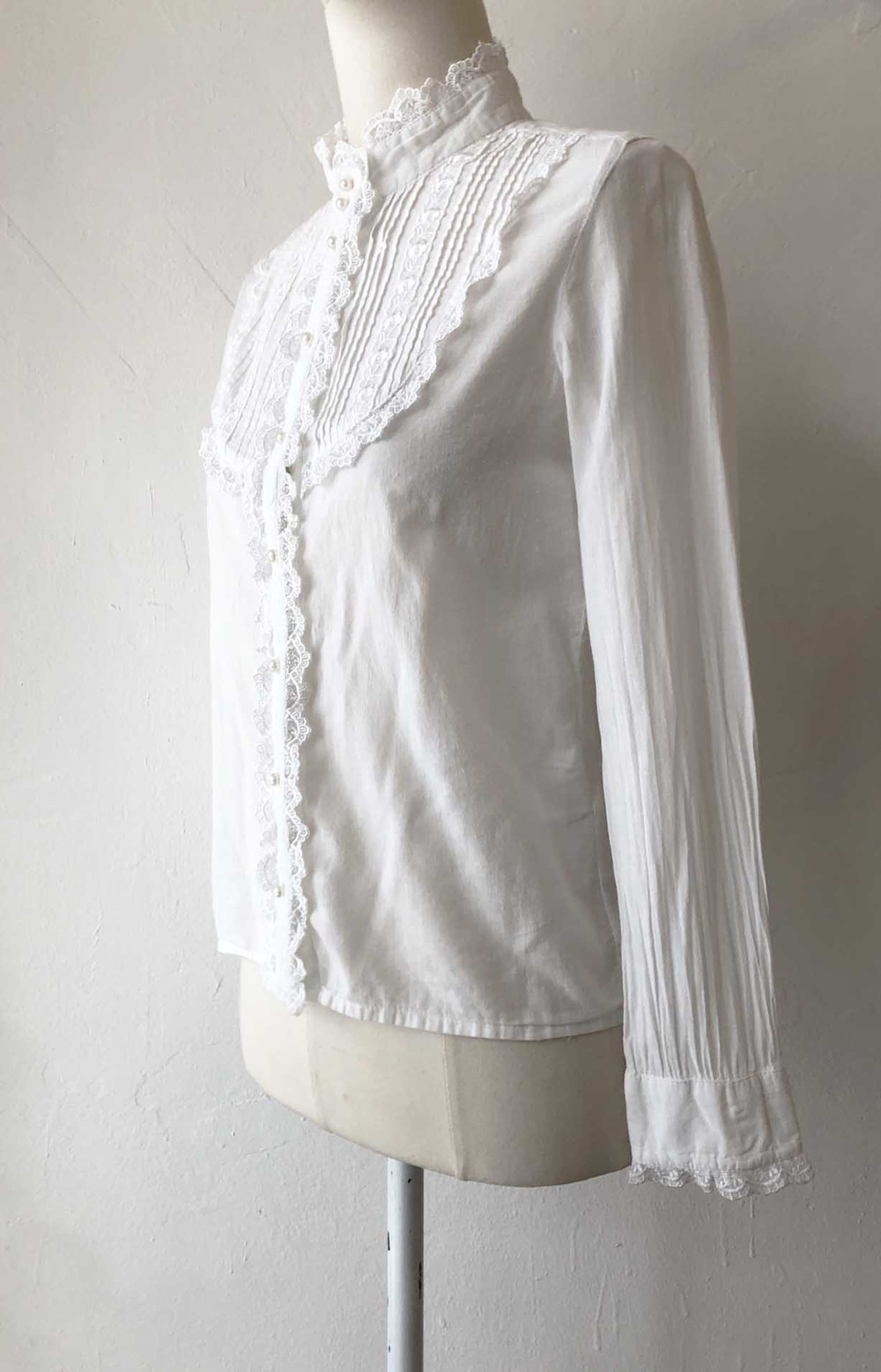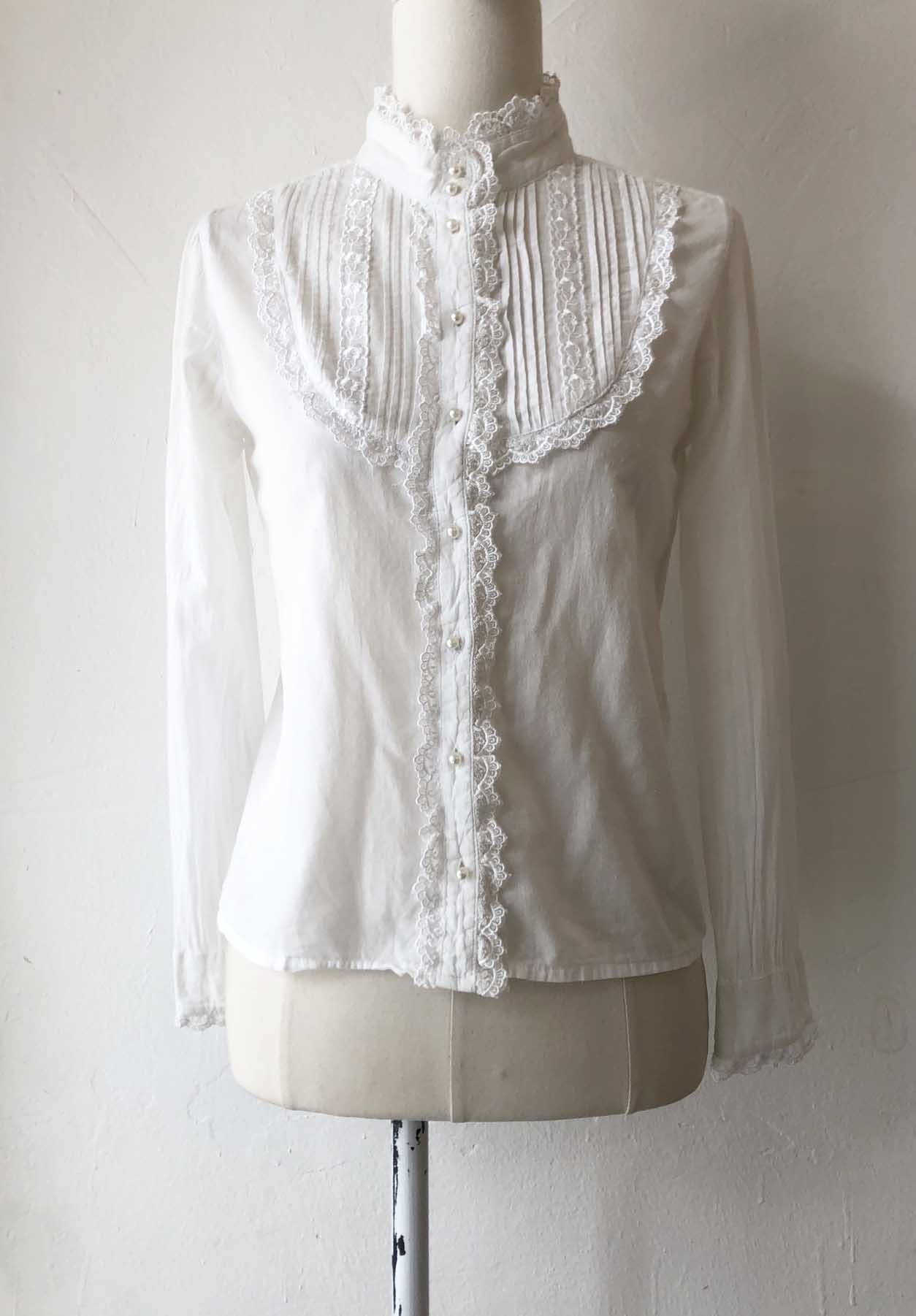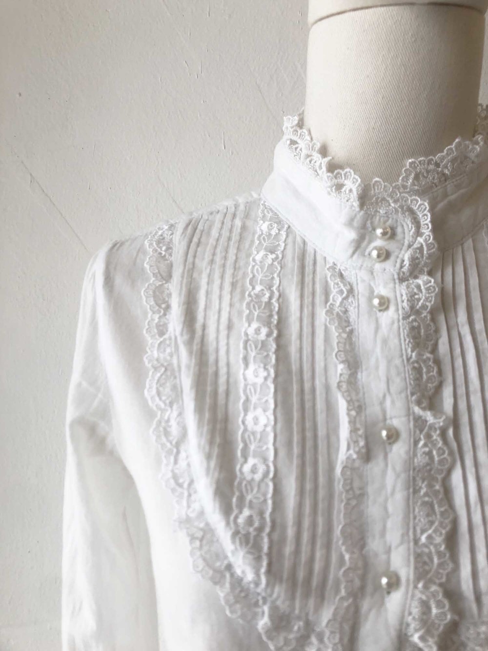 pure white cotton pearly button blouse