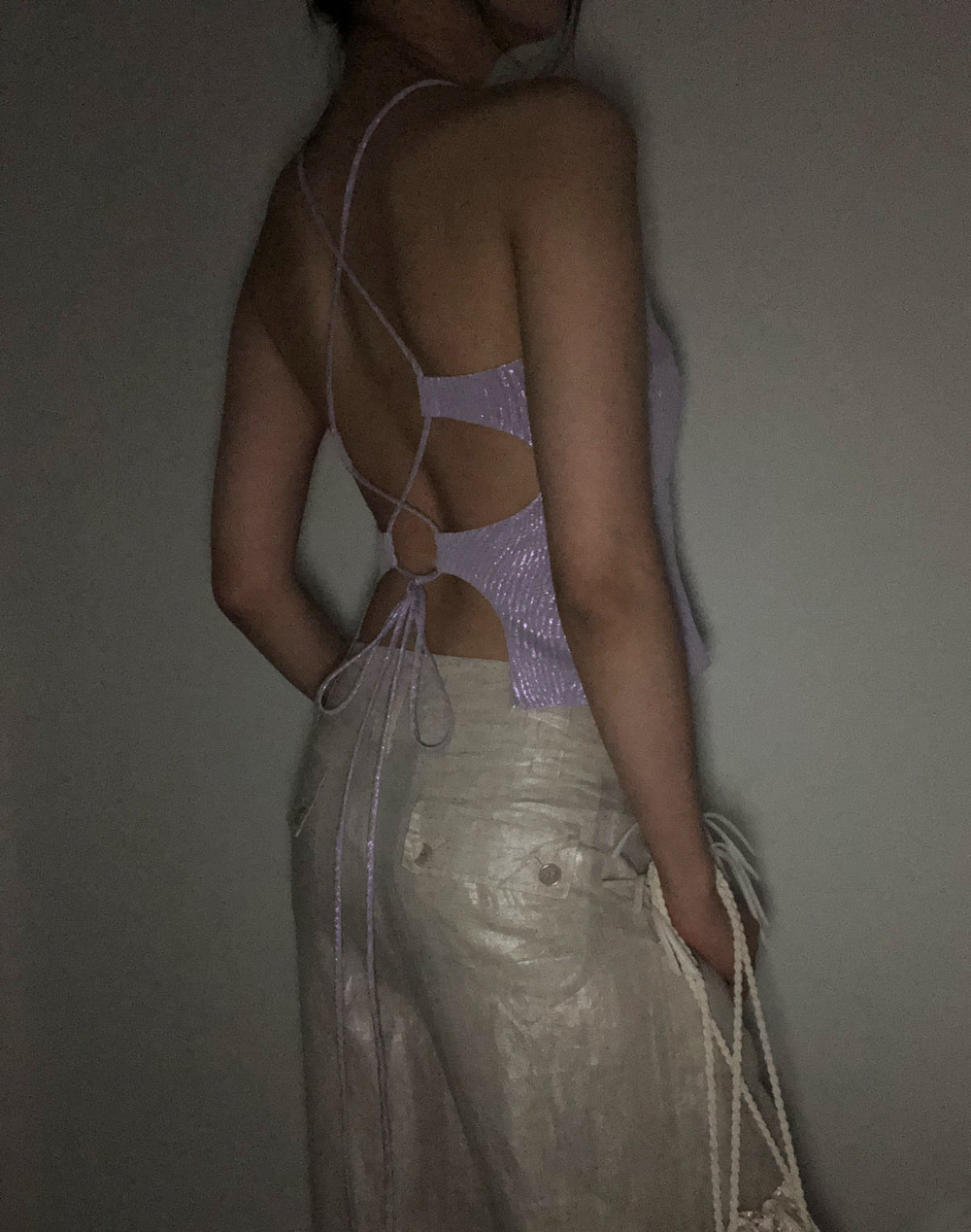 SEIRENE'S HAIR WAVE HALTER TOP - light violet