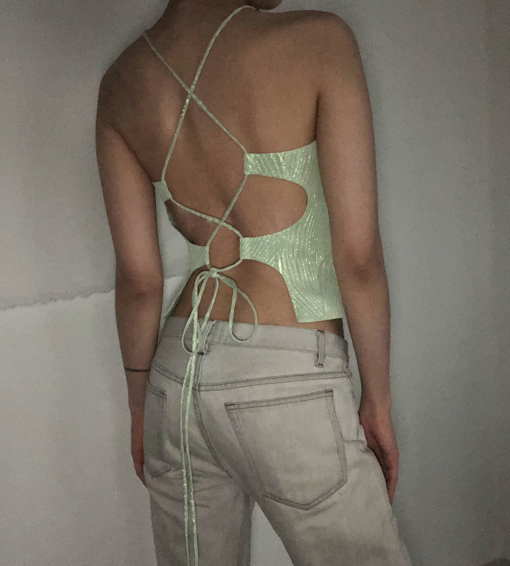 SEIRENE'S HAIR WAVE HALTER TOP - light green
