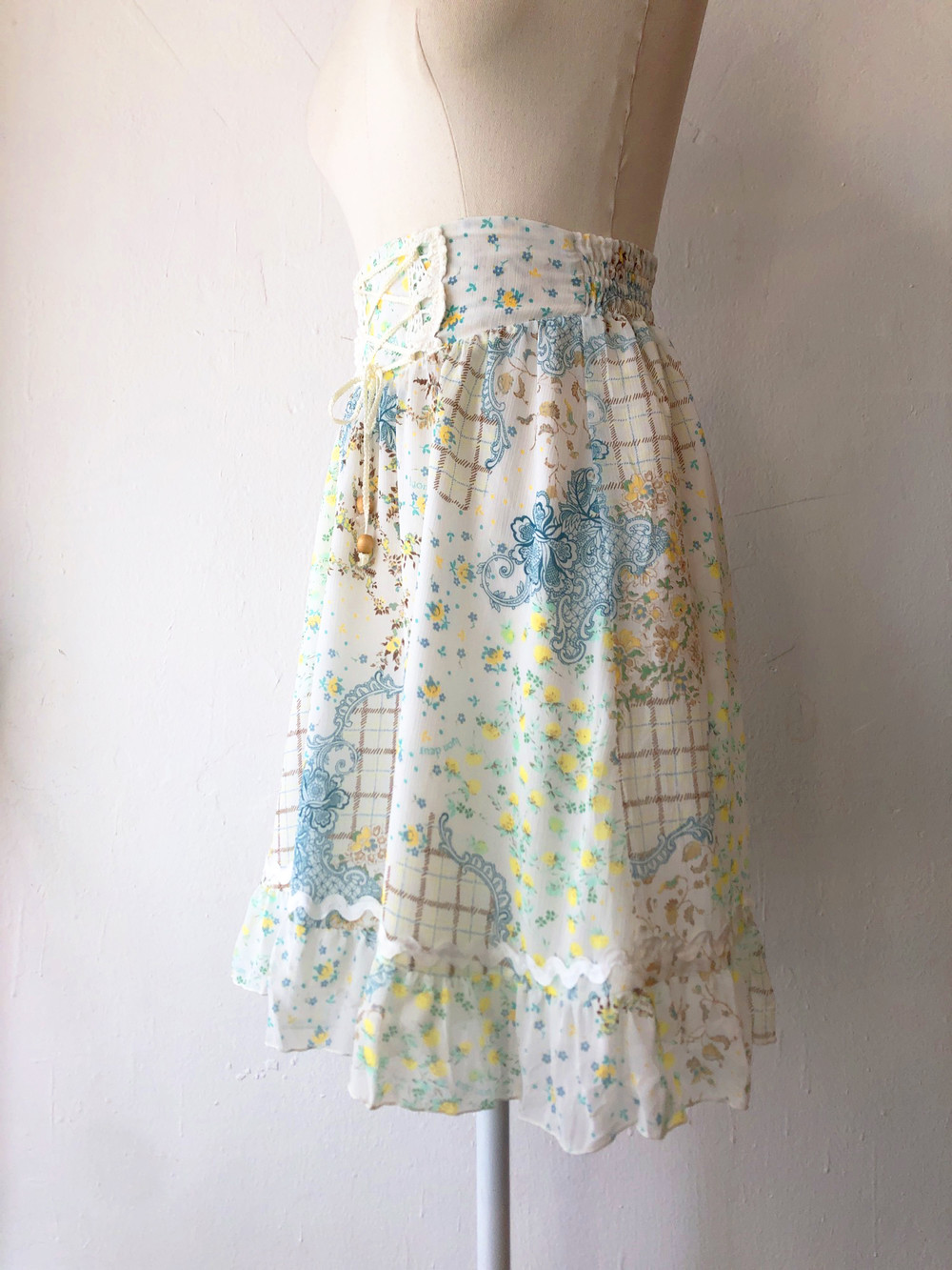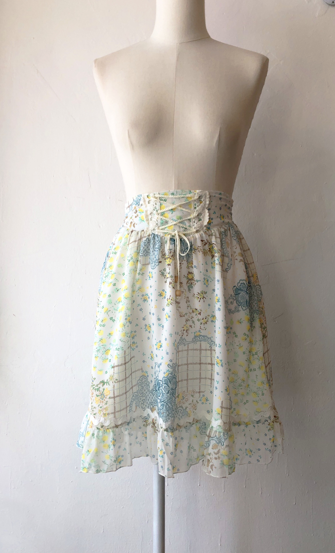 LYON beautiful print lace up chiffon skirt
