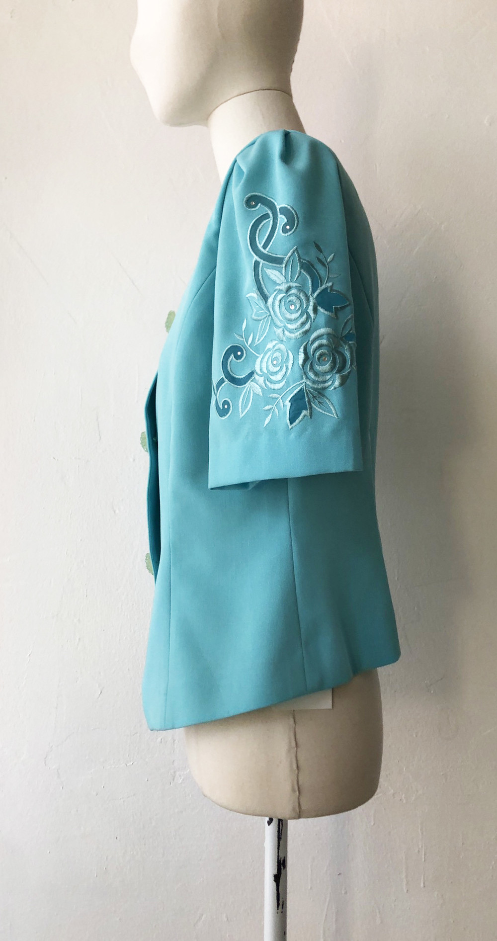 자수 레이스가 장식된 고급스러운 여름자켓.