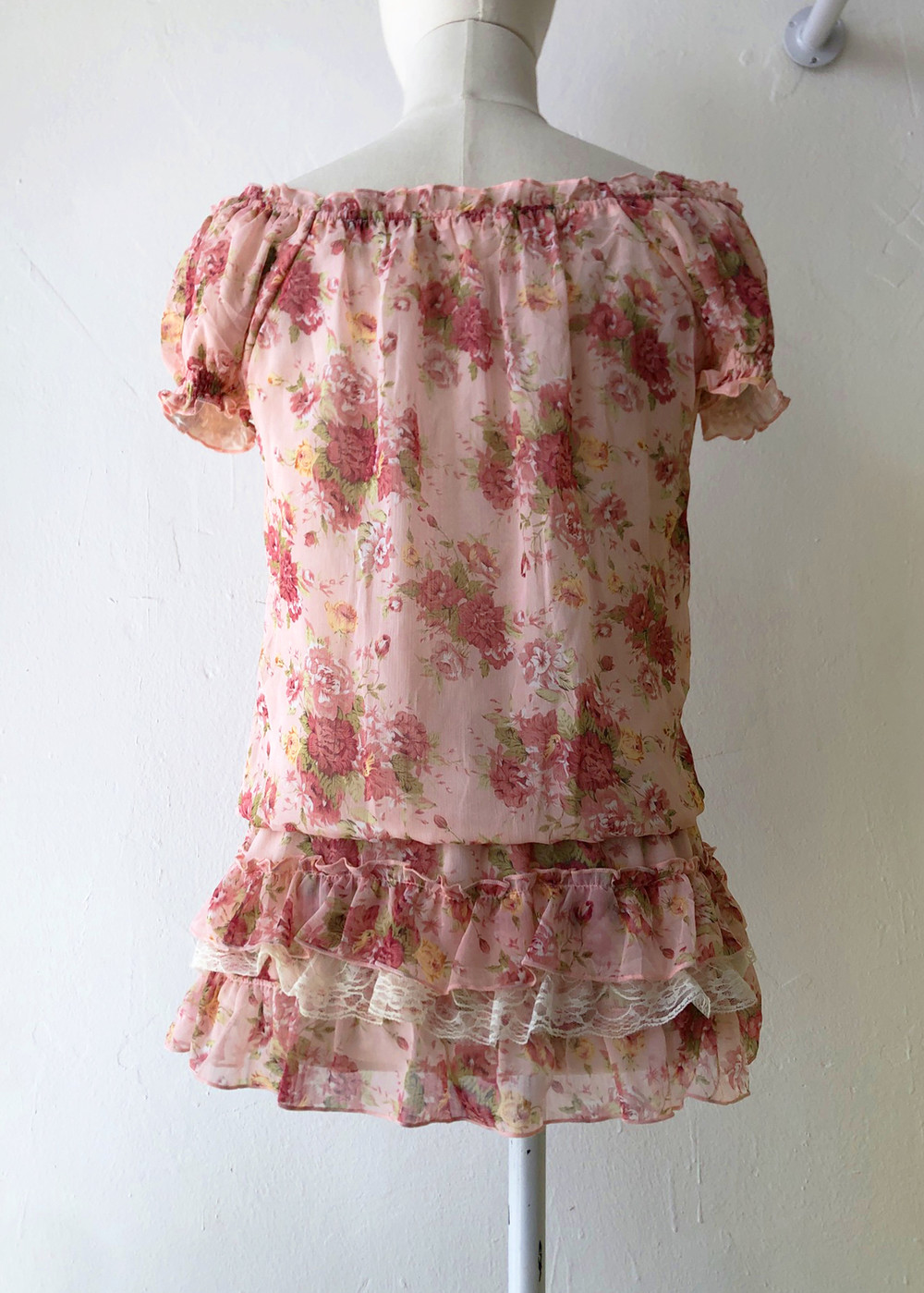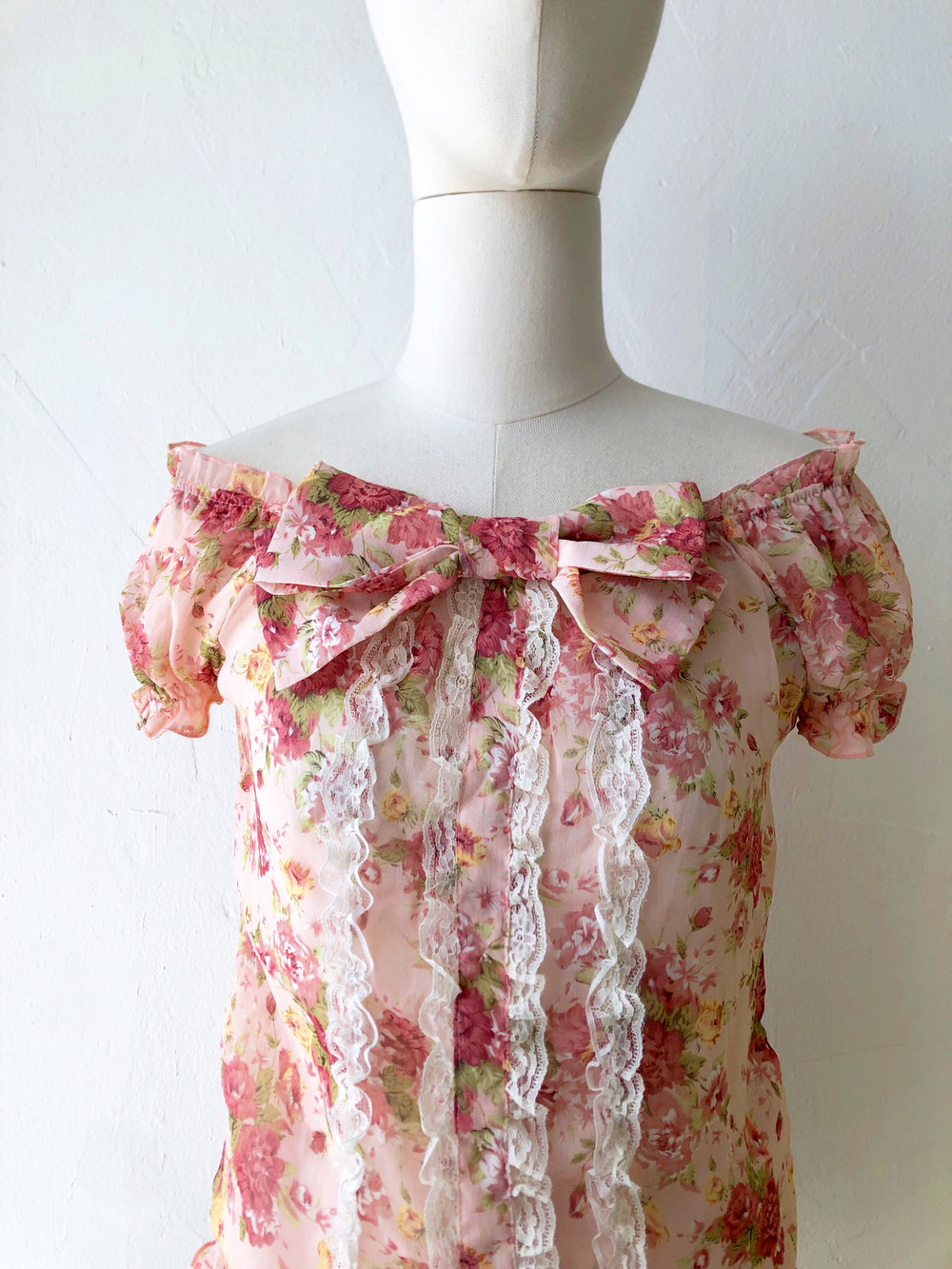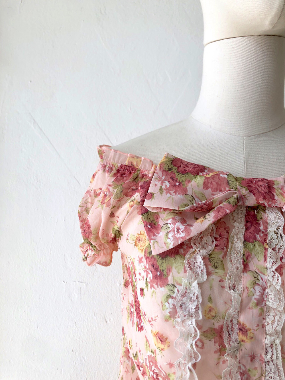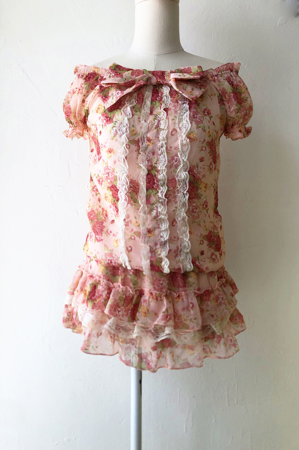 beautiful pink big ribbon lace blouse