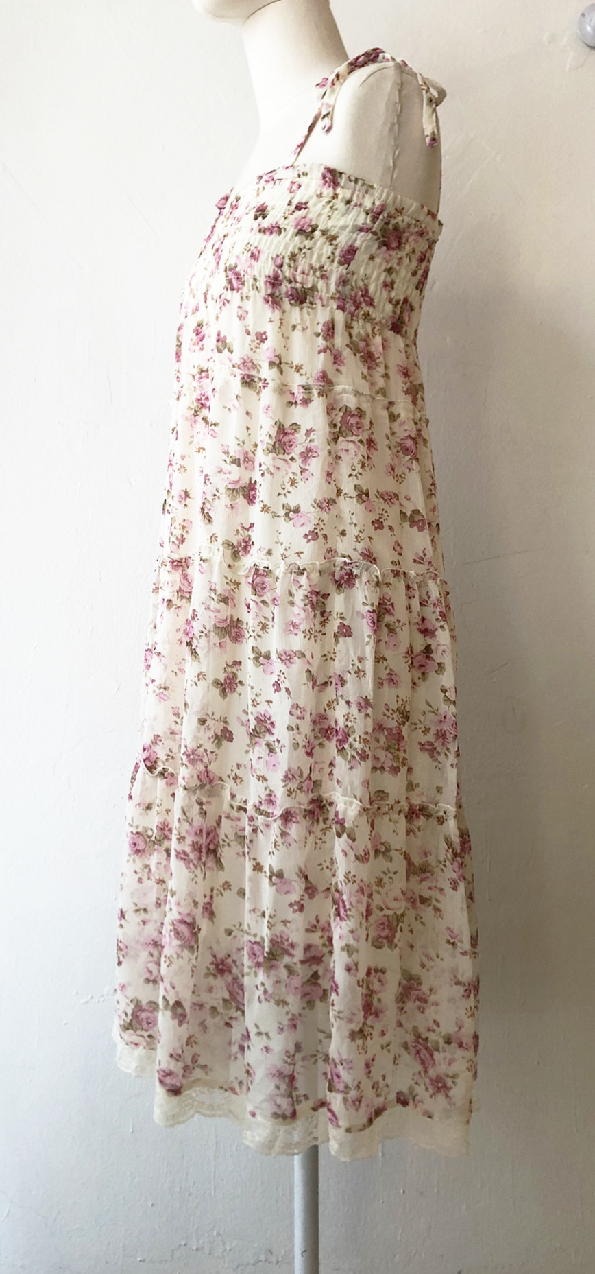 아이보리빛 쉬폰위의 바이올렛빛 꽃이 얹어진