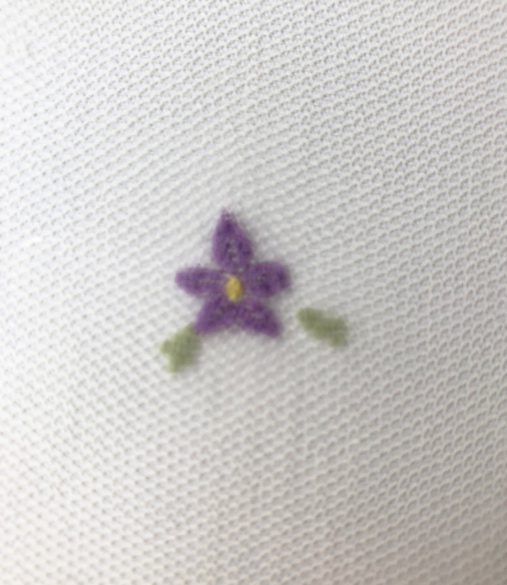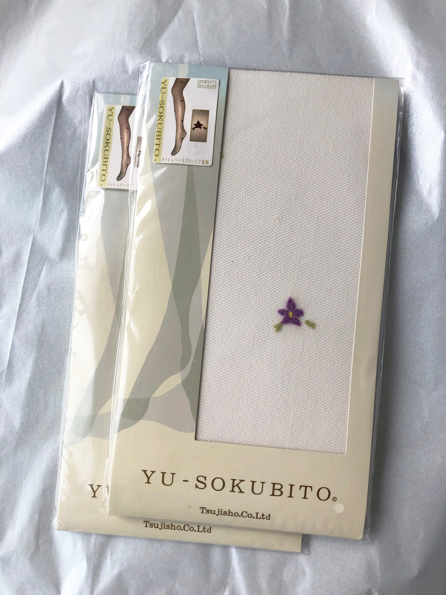 YU SOKUBITO 의 수놓인 작은 보라꽃이 흩뿌려진 아이보리빛 망사스타킹
